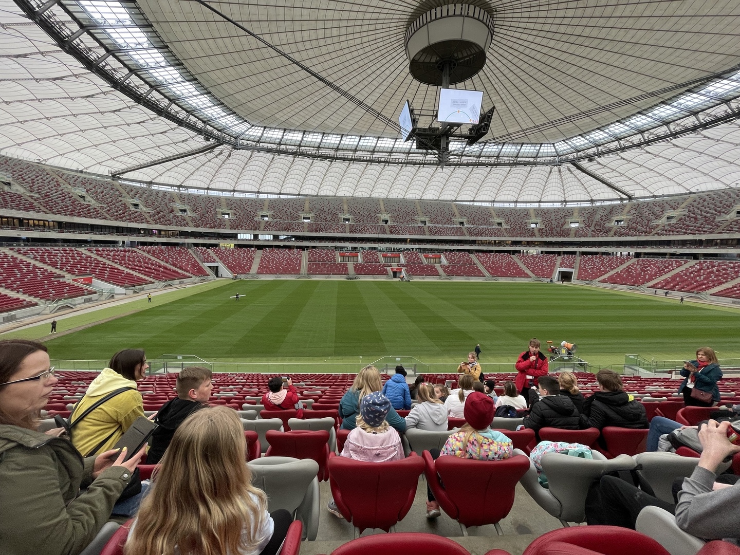 Pierwszego dnia zwiedzanie rozpoczęliśmy od Cmentarza Powąskowskiego. Kolejnym punktem był Grób Nieznanego Żołnierza, przy którym mieliśmy okazję zobaczyć zmianę warty. Idąc na Stare Miasto widzieliśmy Hotel Bristol i Pałac Prezydencki. Następnie wraz z Panią przewodnik zwiedziliśmy Zamek Królewski. Ostatnim punktem zwiedzania w pierwszym dniu był Stadion Narodowy PGE gdzie mogliśmy zobaczyć zaplecze tego wspaniałego obiektu.