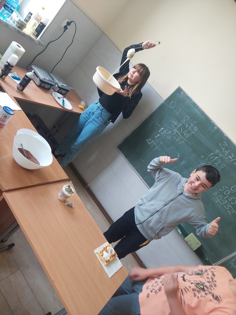 W piątek, 6.05.2022r., Samorząd Uczniowski uraczył wszystkie uczennice oraz uczniów naszej szkoły pysznymi goframi. W całym budynku od samego rana unosił się apetyczny zapach smacznych wypieków. Nasza cykliczna akcja poświęcona ulubionym smakołykom cieszy się ogromnym zainteresowaniem ze strony całej społeczności szkolnej. Zapraszamy do galerii zdjęć z tego wybornego dnia!