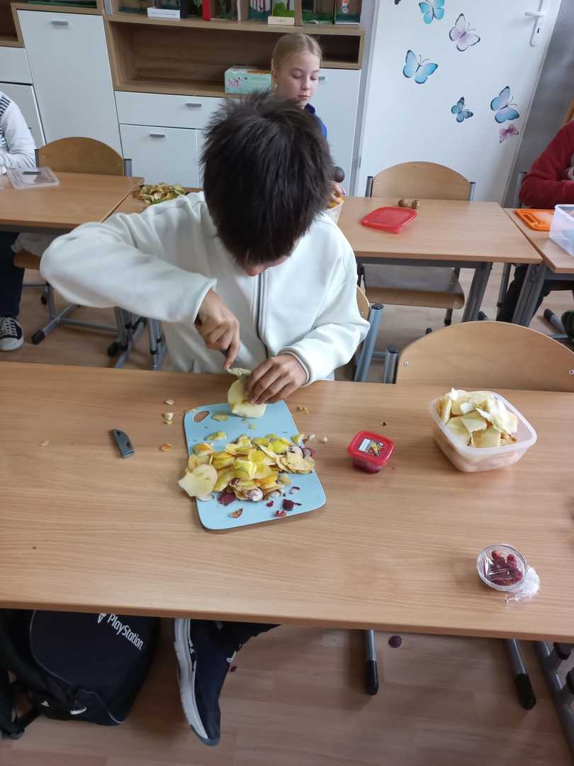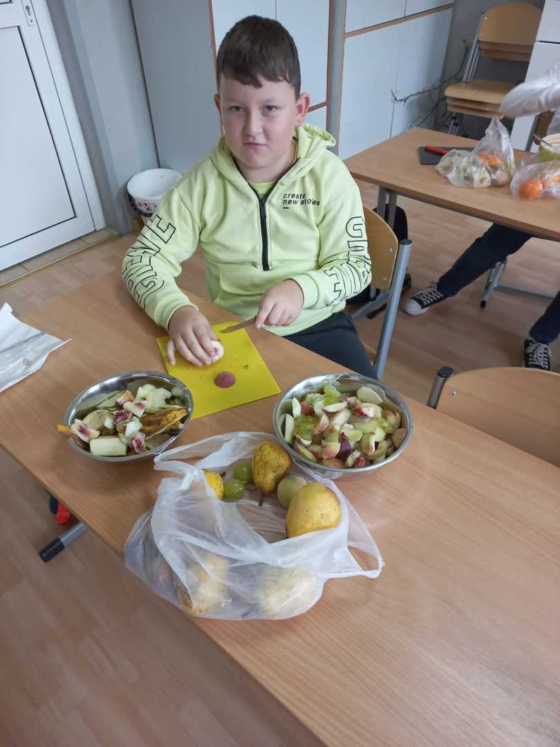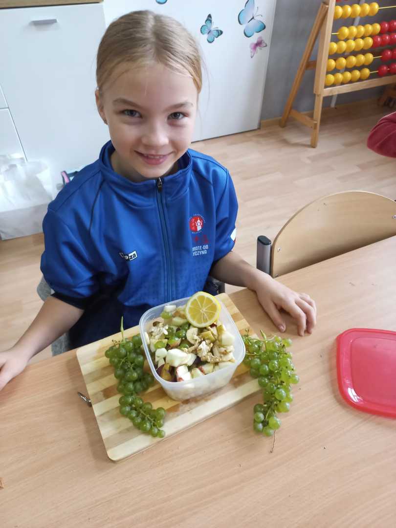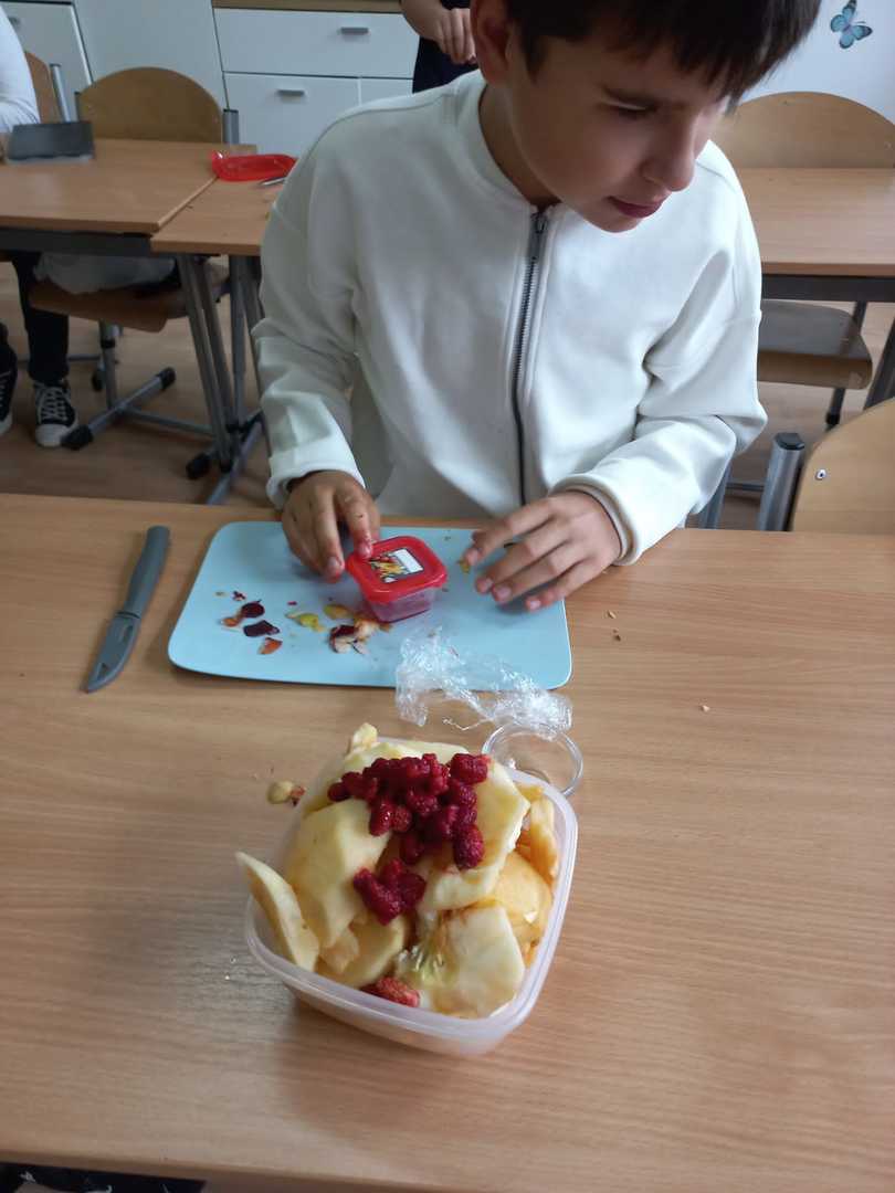 Trzeciaki zrobiły sobie w dniu dzisiejszym Owocowy Dzień. Najpierw wymieniliśmy poglądy na temat korzyści płynących se spożywania owoców i ich pływu na nasze zdrowie. Następnie po wstępnych przygotowaniach każdy zabrał się do pracy. Powstały wspaniałe drugie śniadania w postaci sałatek owocowych. Warto jeść owoce!
