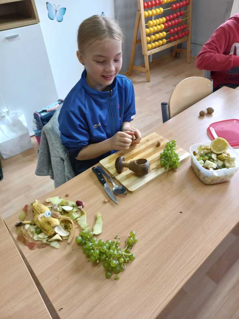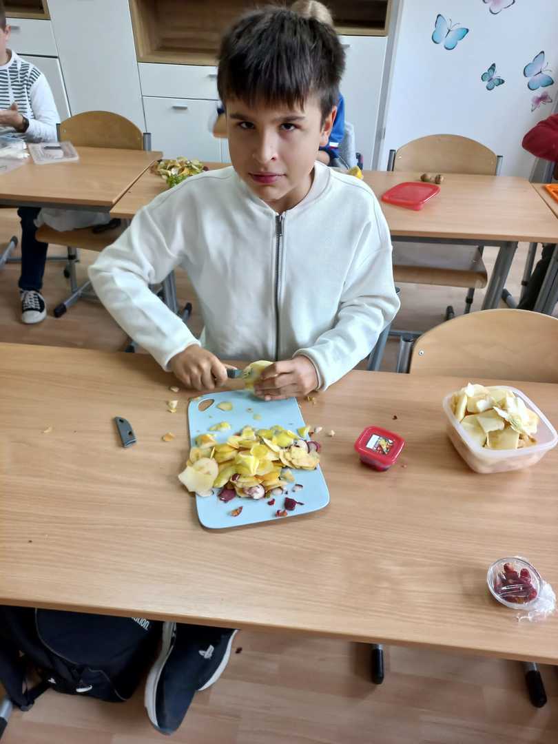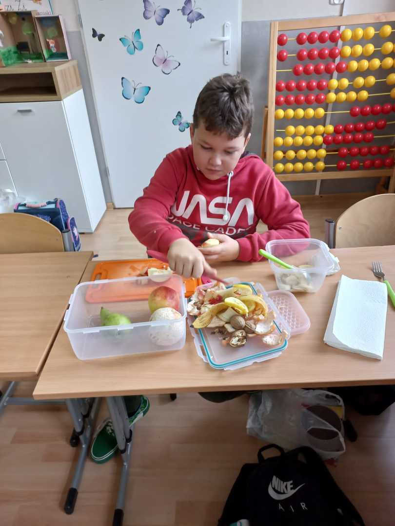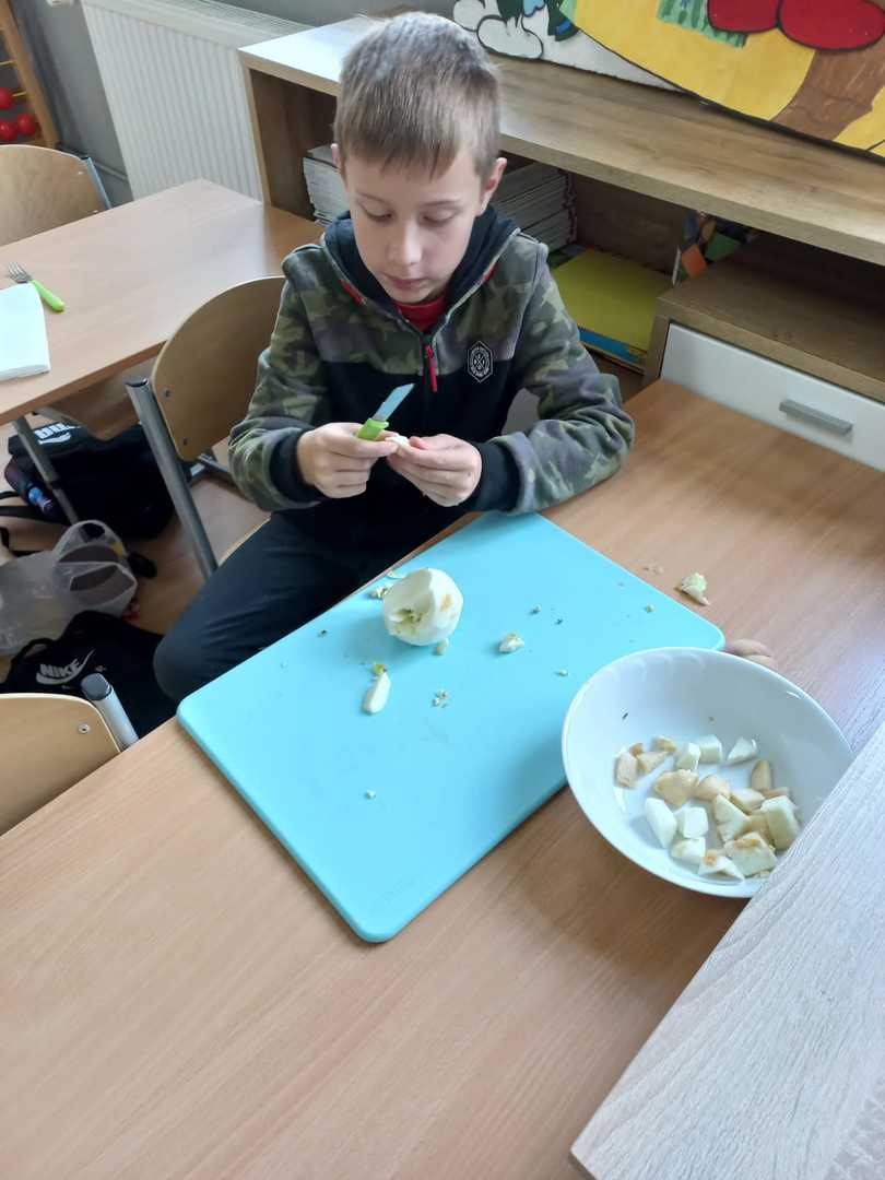 Trzeciaki zrobiły sobie w dniu dzisiejszym Owocowy Dzień. Najpierw wymieniliśmy poglądy na temat korzyści płynących se spożywania owoców i ich pływu na nasze zdrowie. Następnie po wstępnych przygotowaniach każdy zabrał się do pracy. Powstały wspaniałe drugie śniadania w postaci sałatek owocowych. Warto jeść owoce!