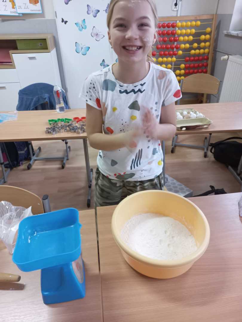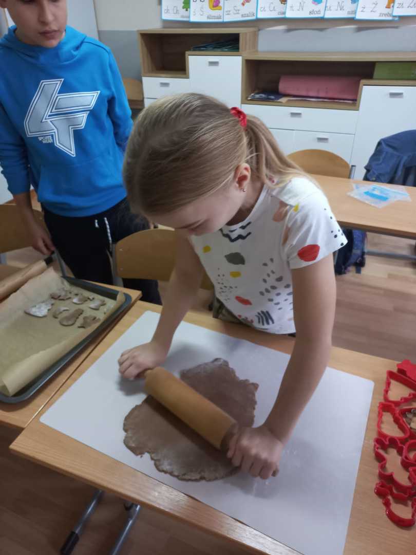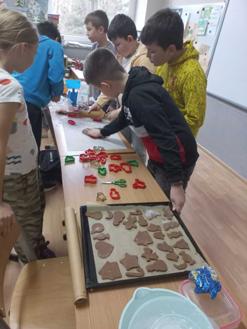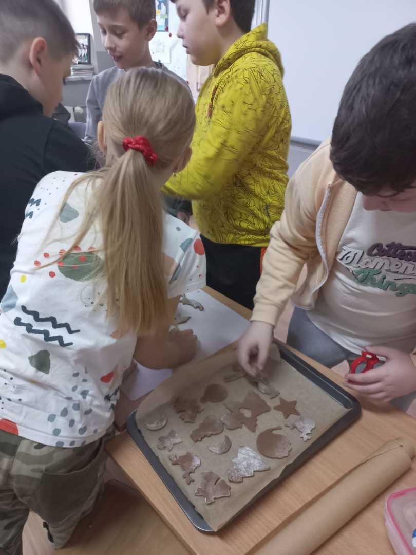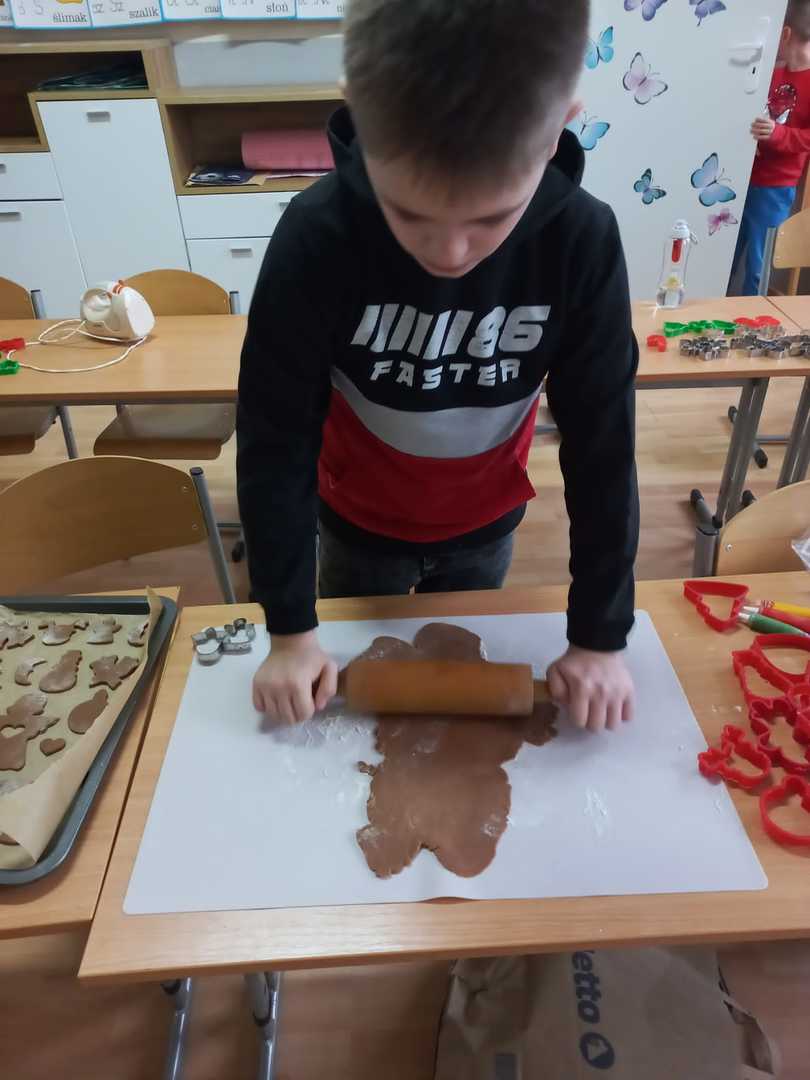 Klasa III postanowiła jak najszybciej rozpocząć czas, w którym czuć magię zbliżających się Świąt Bożego Narodzenia. I dlatego ochoczo zabrała się do pracy. Dobry przepis, maka, masło, miód, przyprawy no i jajka od szczęśliwych kur przeistoczyly się w kształtne pierniczki, a ich zapach niósł się po całej szkole. Później praca dekoratorów i pyszne cudeńka cieszyły oczy i kusiły smakiem.