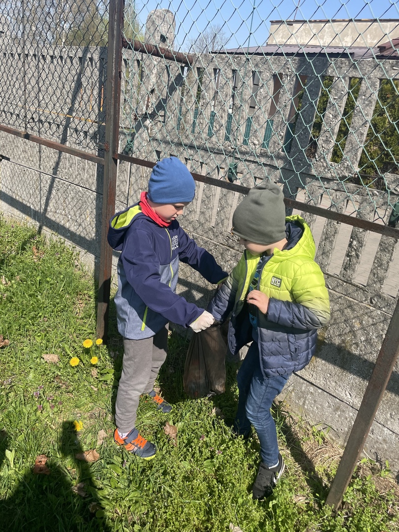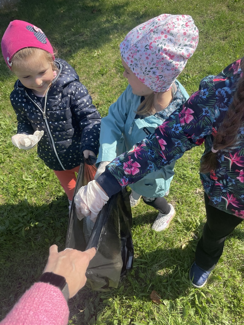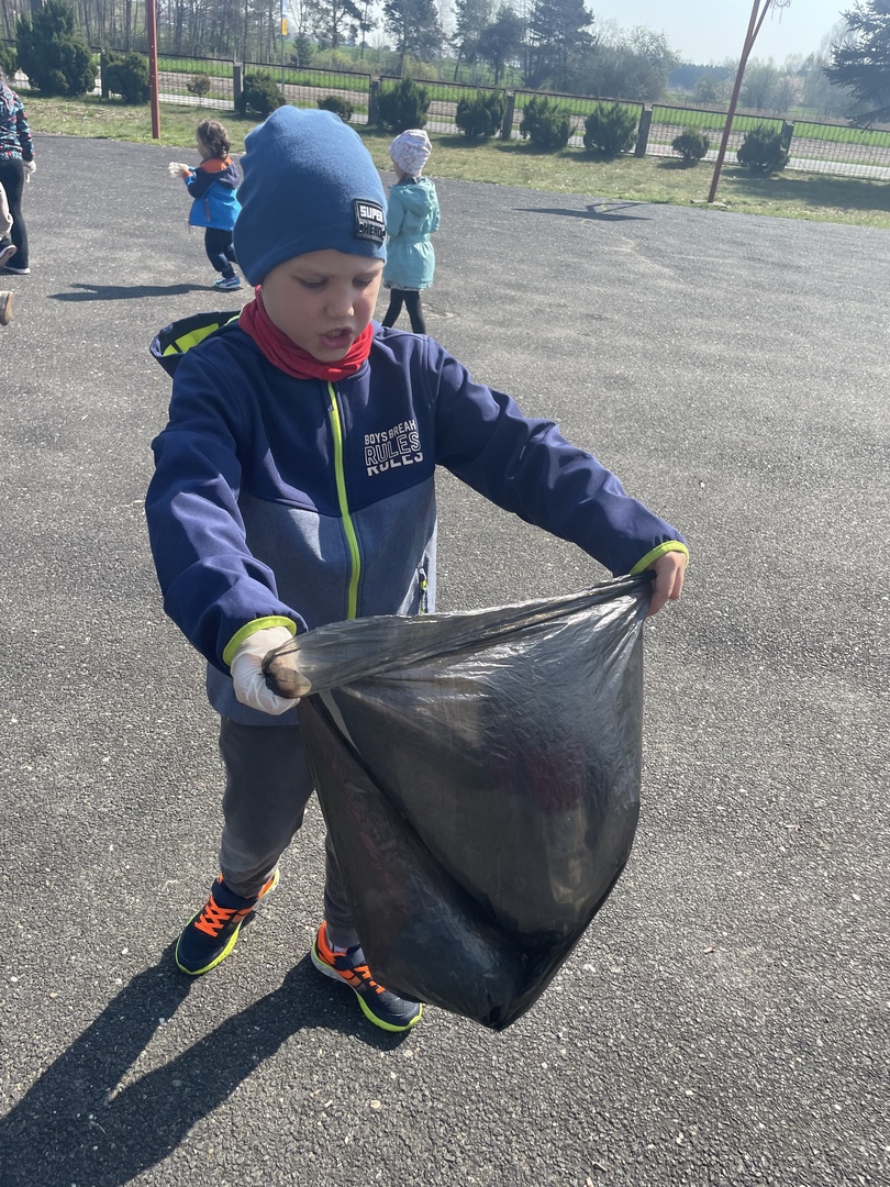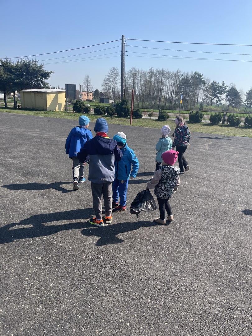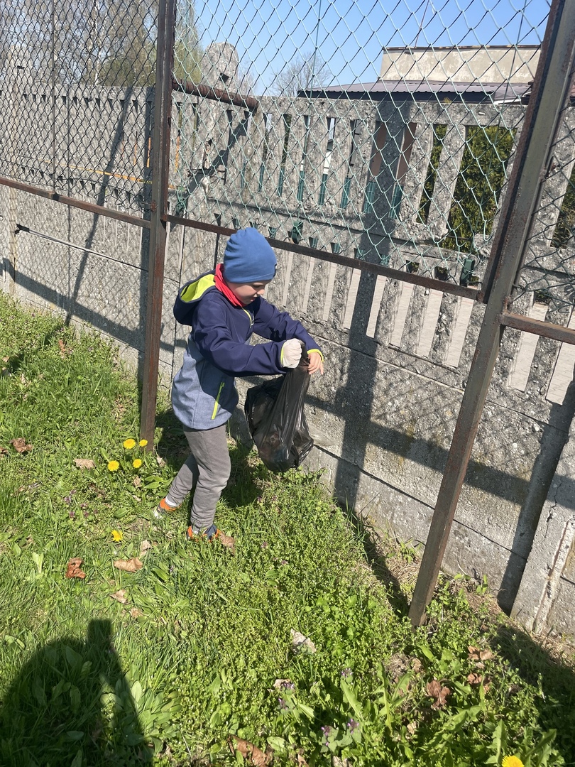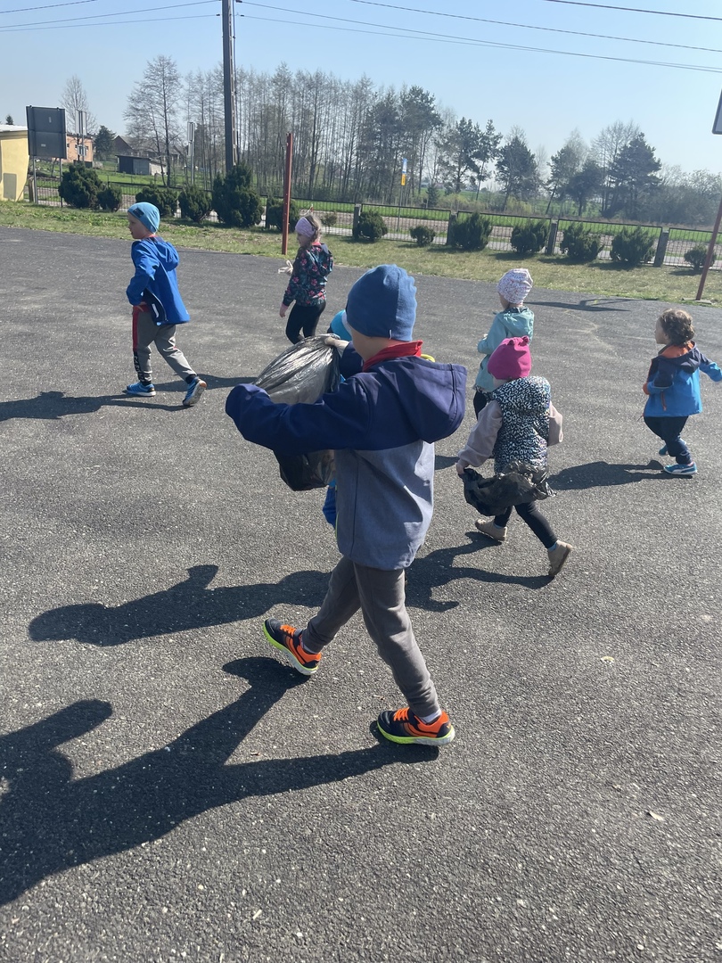 W piątkowe przedpołudnie 21.04.2023r. przedszkolaki posprzątały najbliższy teren wokół budynku szkoły. Każdy otrzymał jednorazową rękawiczkę i wyruszył w poszukiwaniu śmieci. Dzięki temu wokół przedszkola zrobiło się czysto i przyjemnie. Wiek przedszkolny to okres wzmożonej aktywności poznawczej i emocjonalnej. Dlatego już w tym wieku należy dziecku ukazać potęgę i piękno otaczającego świata, wzbudzić w dziecku pozytywne uczucia takie jak odpowiedzialność wobec siebie i przyrody. Głównym celem tej akcji było ukazanie dzieciom skutków zaśmiecania „świata”, wyjaśnienie konieczności ochrony środowiska, recyklingu. Mamy nadzieję, że w ten sposób zdobyte doświadczenia zaowocują w przyszłości dobrymi ekologicznymi nawykami.