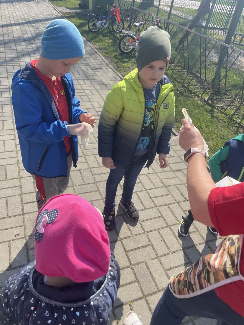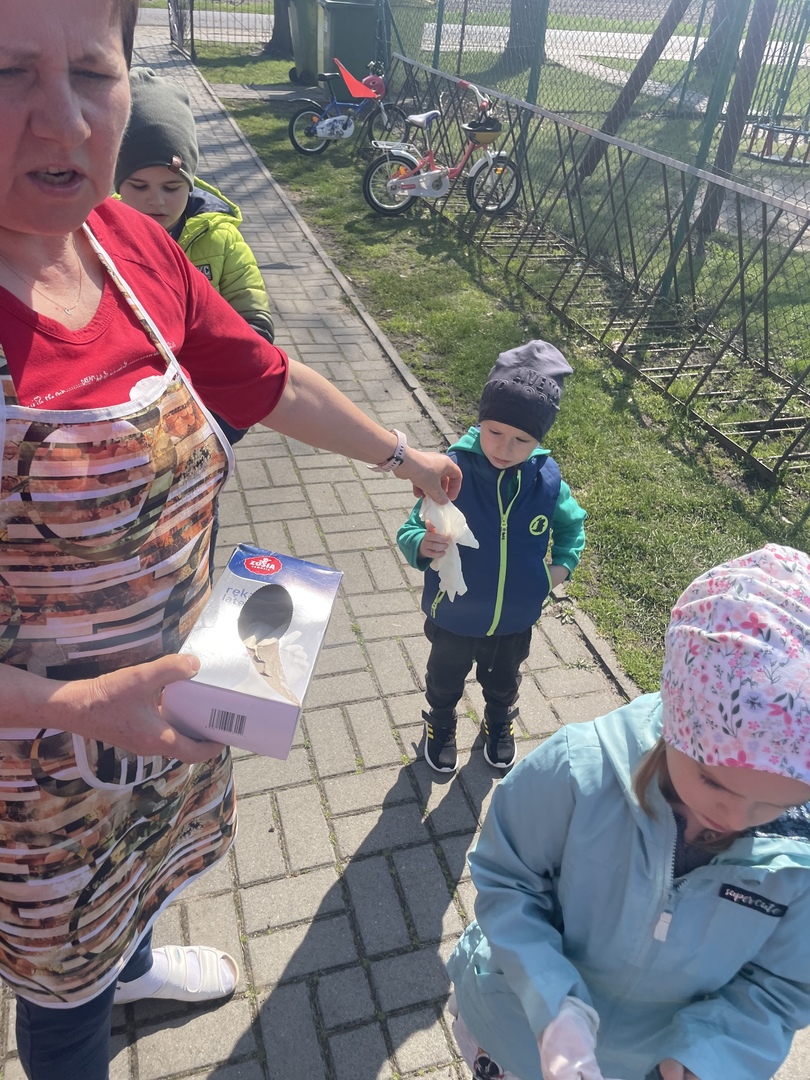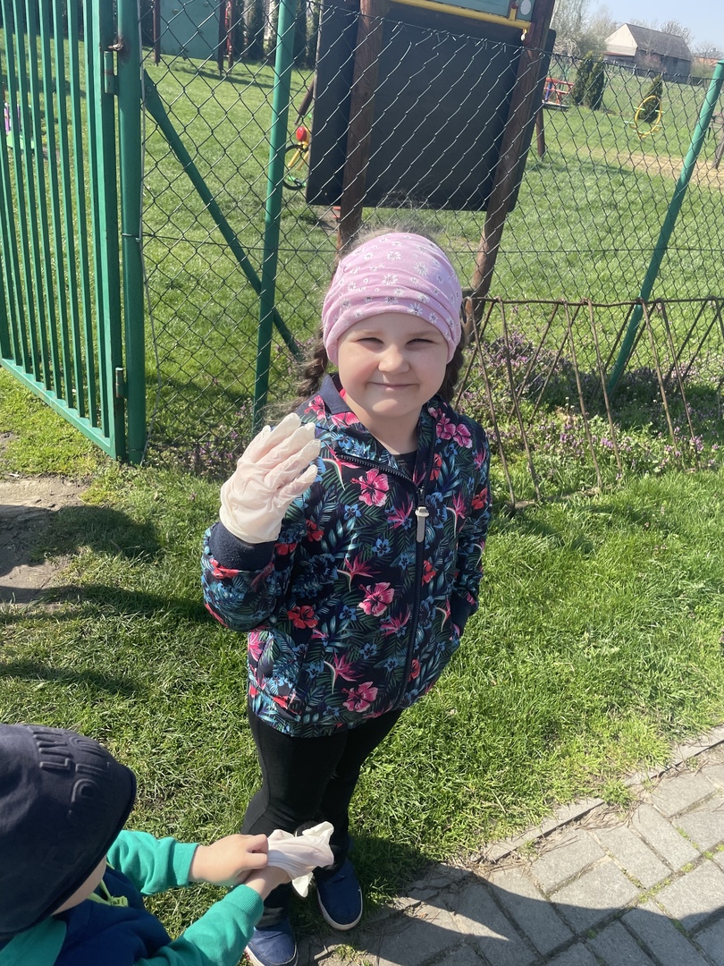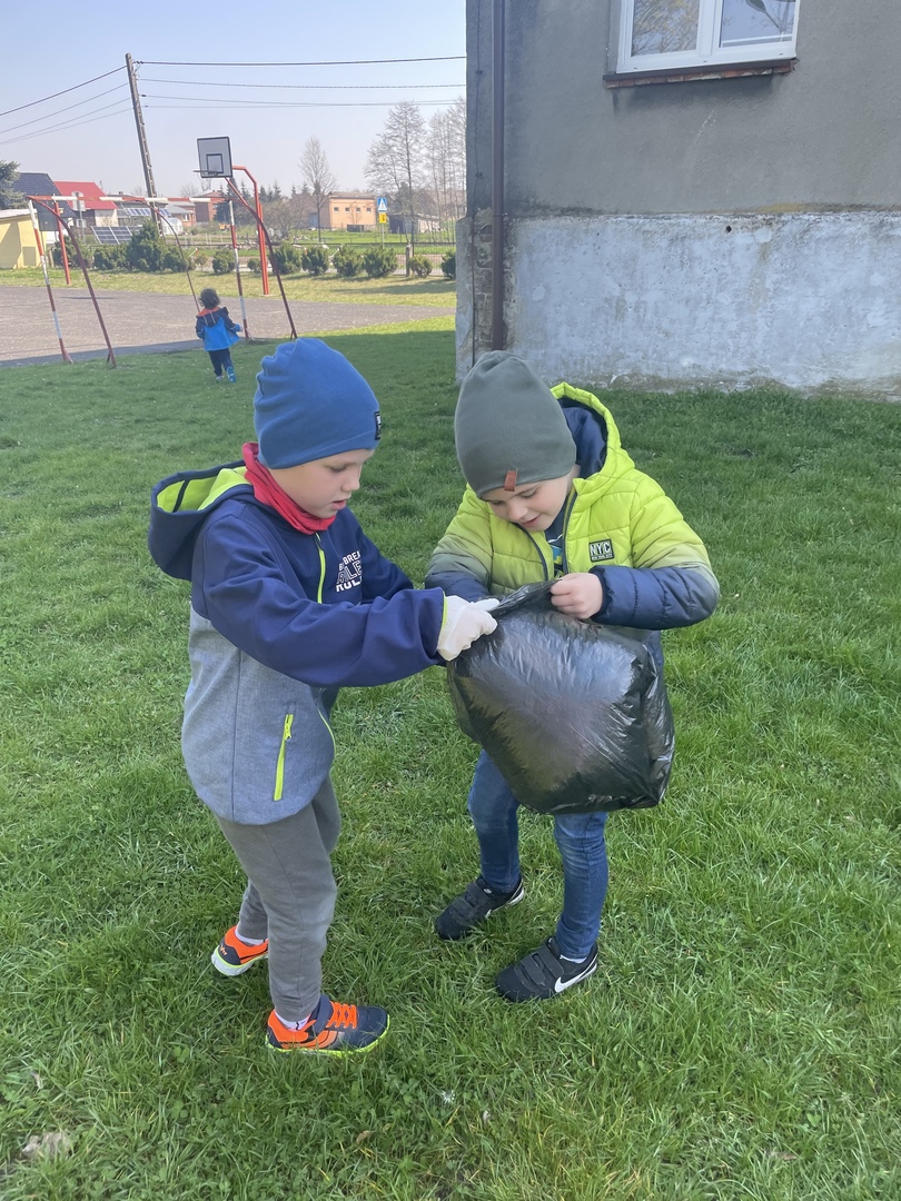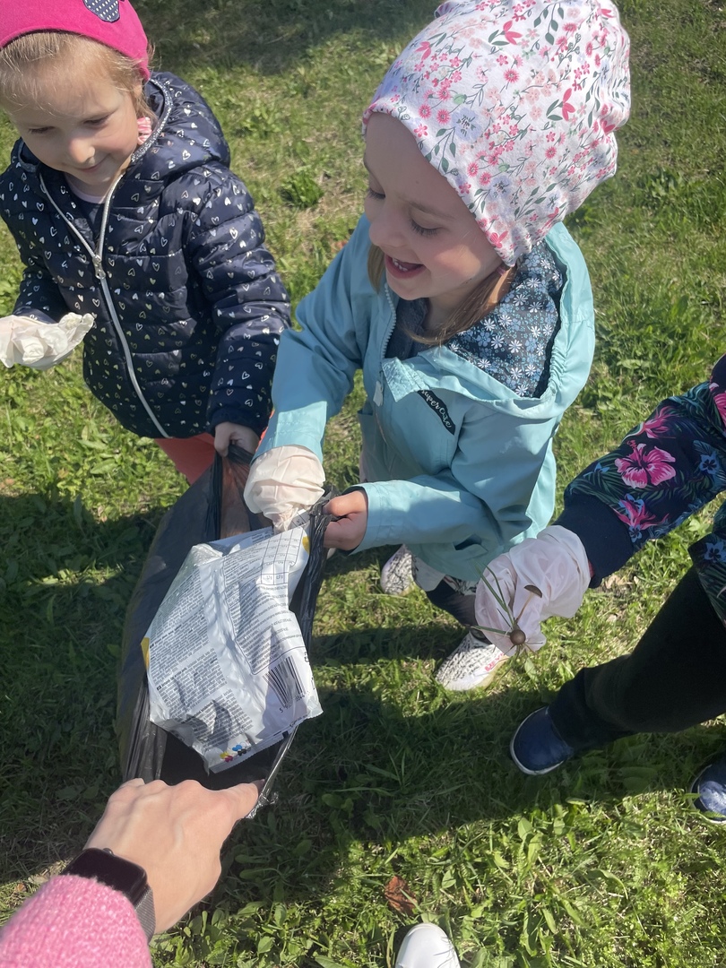 W piątkowe przedpołudnie 21.04.2023r. przedszkolaki posprzątały najbliższy teren wokół budynku szkoły. Każdy otrzymał jednorazową rękawiczkę i wyruszył w poszukiwaniu śmieci. Dzięki temu wokół przedszkola zrobiło się czysto i przyjemnie. Wiek przedszkolny to okres wzmożonej aktywności poznawczej i emocjonalnej. Dlatego już w tym wieku należy dziecku ukazać potęgę i piękno otaczającego świata, wzbudzić w dziecku pozytywne uczucia takie jak odpowiedzialność wobec siebie i przyrody. Głównym celem tej akcji było ukazanie dzieciom skutków zaśmiecania „świata”, wyjaśnienie konieczności ochrony środowiska, recyklingu. Mamy nadzieję, że w ten sposób zdobyte doświadczenia zaowocują w przyszłości dobrymi ekologicznymi nawykami.