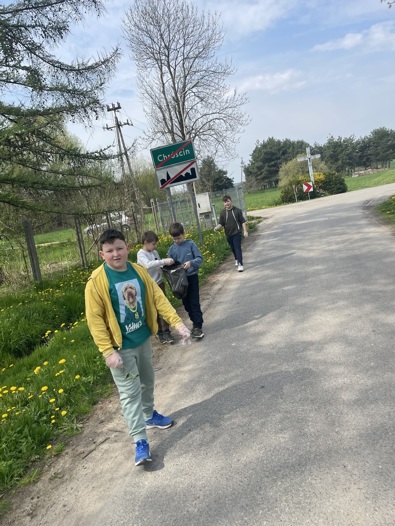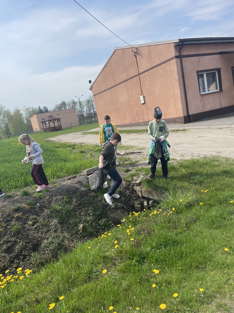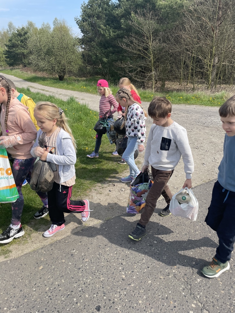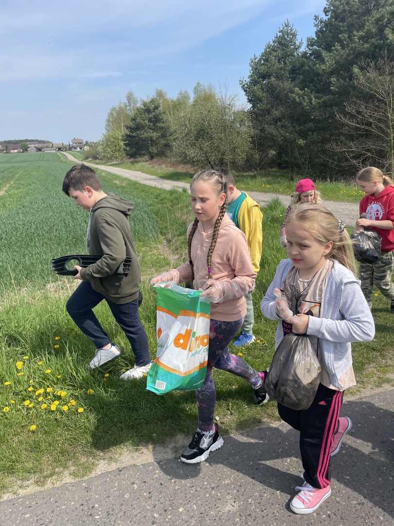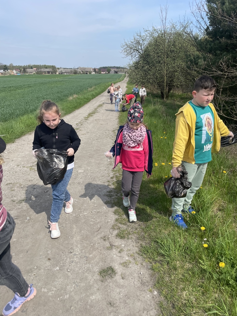 Klasy 1-3 wyruszyły na poszukiwanie śmieci w poniedziałek, a klasy 4-8 we wtorek. Wspólnie z wychowawcami zaopatrzeni w worki i jednorazowe rękawiczki po raz kolejny uczestniczyli w akcji ekologicznej. Rocpoczęto ją pogadanką na temat bezpieczeństwa oraz celów głównych akcji. Dzieci sprzątały teren wokół szkoły, drogę w stronę cmentarza, prowadzącą przez wioskę oraz tz. "Pokorówkę" w stronę lasu. Dzięki pięknej, słonecznej pogodzie akcja przebiegła szybko i sprawnie, a efekty pracy uczniów były zadowalające. Czynny udział w tym przedsięwzięciu dał uczniom do zrozumienia, że nalezy dbac o swoje środowisko oraz czystośc otoczenia.