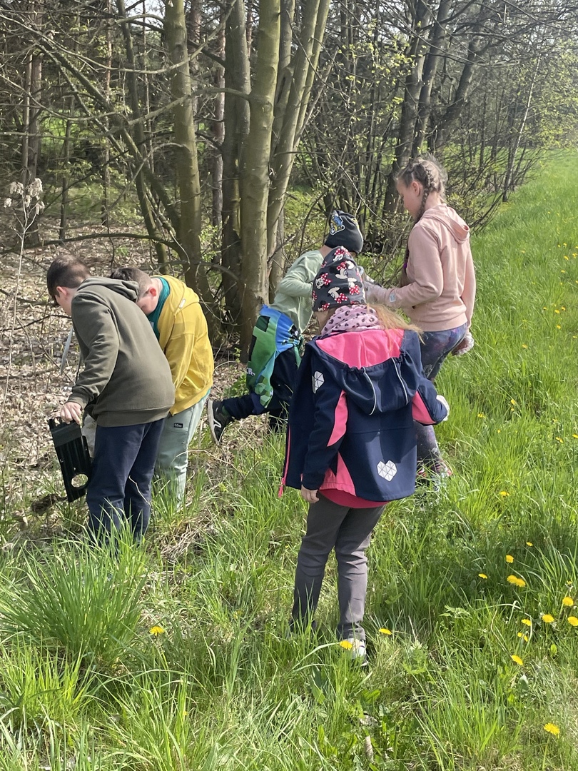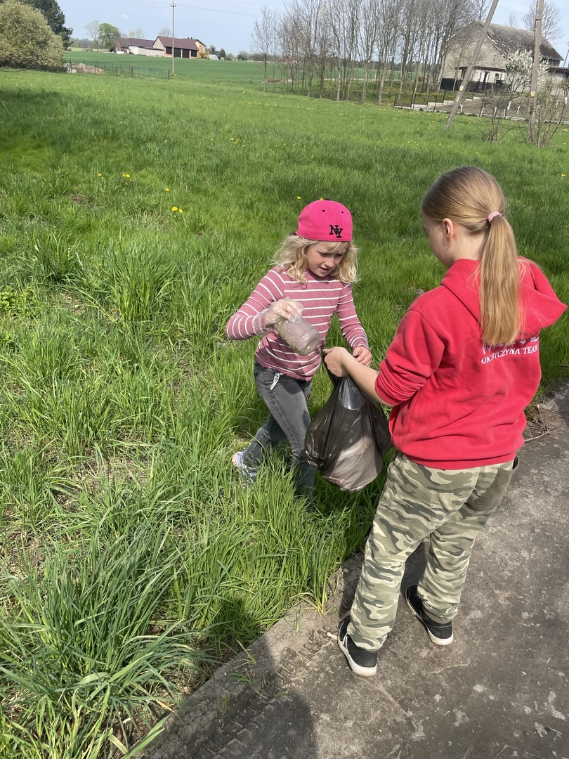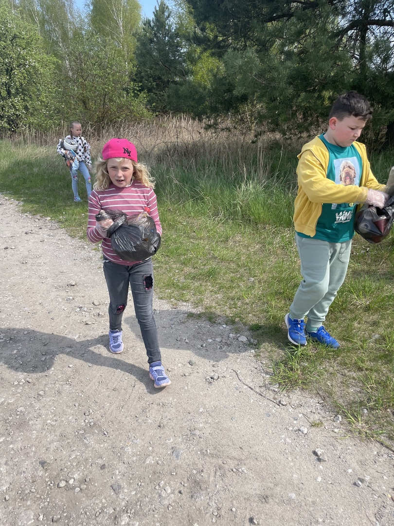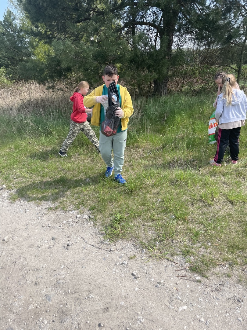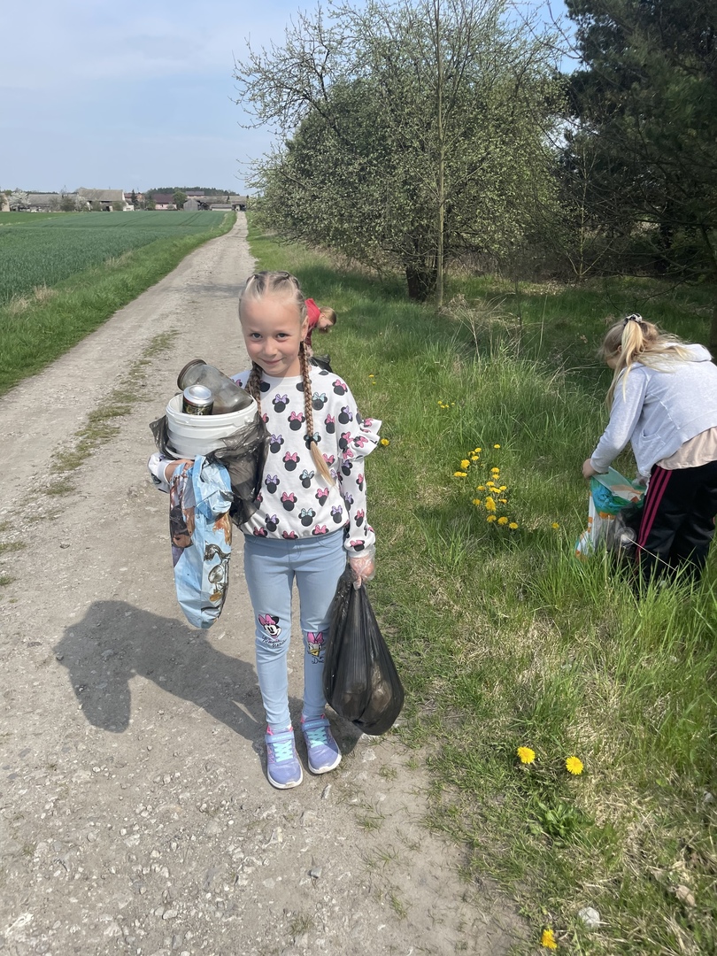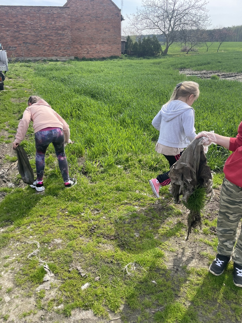 Klasy 1-3 wyruszyły na poszukiwanie śmieci w poniedziałek, a klasy 4-8 we wtorek. Wspólnie z wychowawcami zaopatrzeni w worki i jednorazowe rękawiczki po raz kolejny uczestniczyli w akcji ekologicznej. Rocpoczęto ją pogadanką na temat bezpieczeństwa oraz celów głównych akcji. Dzieci sprzątały teren wokół szkoły, drogę w stronę cmentarza, prowadzącą przez wioskę oraz tz. "Pokorówkę" w stronę lasu. Dzięki pięknej, słonecznej pogodzie akcja przebiegła szybko i sprawnie, a efekty pracy uczniów były zadowalające. Czynny udział w tym przedsięwzięciu dał uczniom do zrozumienia, że nalezy dbac o swoje środowisko oraz czystośc otoczenia.
