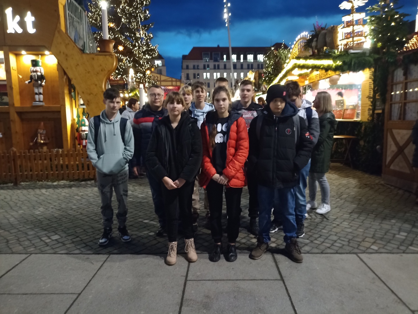 W środę, 13 grudnia, uczniowie naszej szkoły razem z młodzieżą z Bolesławca i Parcic pojechali na wycieczkę na jarmark bożonarodzeniowy do Drezna. Zwiedzanie miasta rozpoczęliśmy od obejrzenia panoramy barokowego miasta namalowanego przez Yadagara Assisi, malowidła ogromnych rozmiarów umieszczonego w wielkiej rotundzie. Następnie przejechaliśmy autokarem do centrum, gdzie podziwialiśmy drezdeńską starówkę, z przepięknym gmachem opery. Kulminacyjnym punktem wycieczki był pobyt na bożonarodzeniowym jarmarku, gdzie młodzież doświadczyła zbliżającej się atmosfery świątecznej wędrując pomiędzy różnorodnymi budkami pełnymi regionalnych smakołyków i ozdób świątecznych. Pełni wrażeń, w doskonałych humorach wróciliśmy do domów, uprzednio wstępując jak to bywa na dobrej wycieczce do McDonalds.