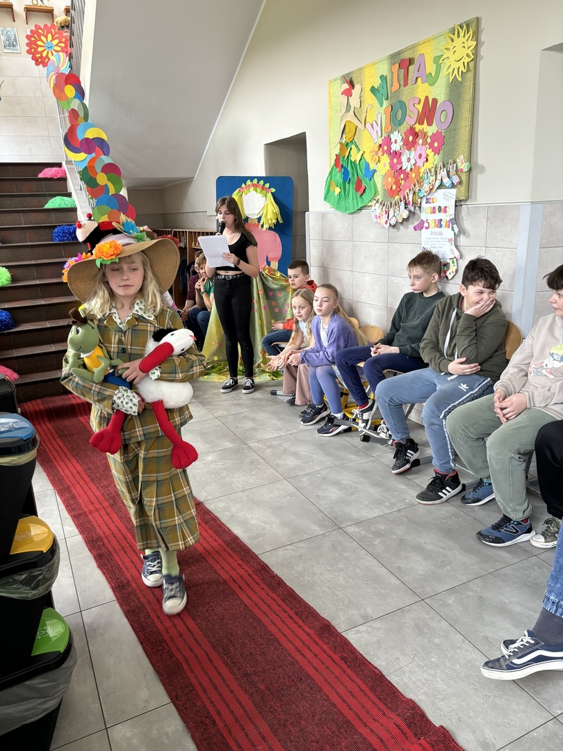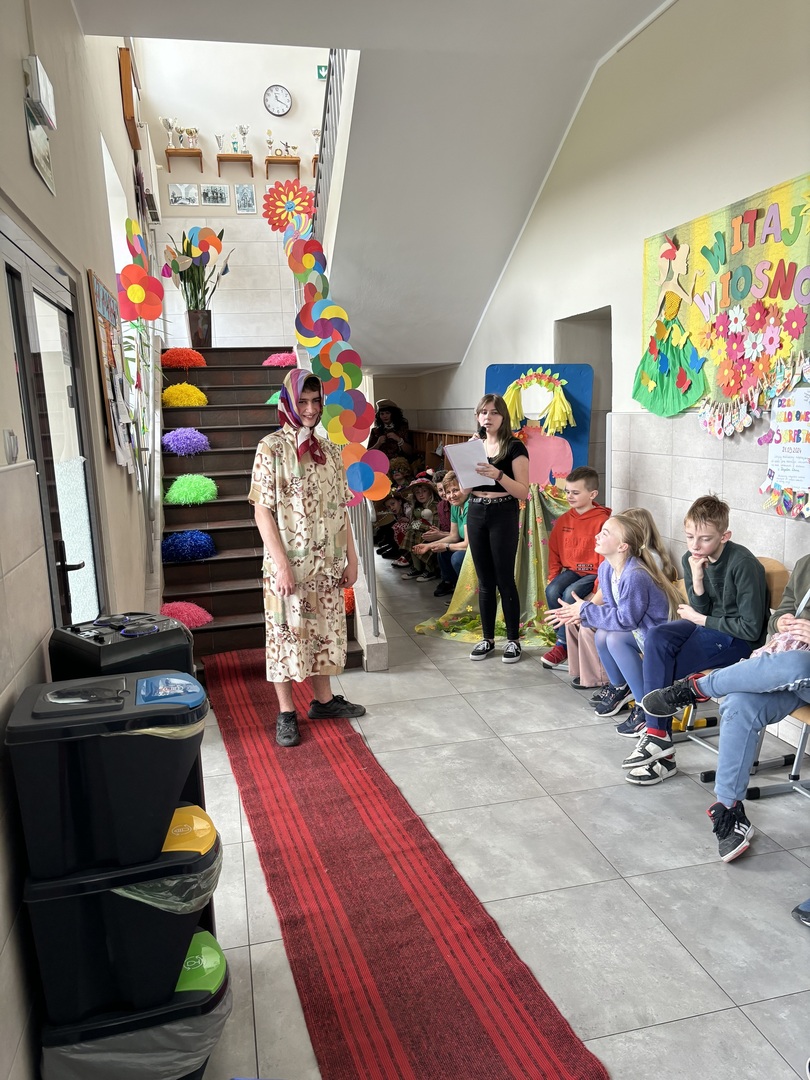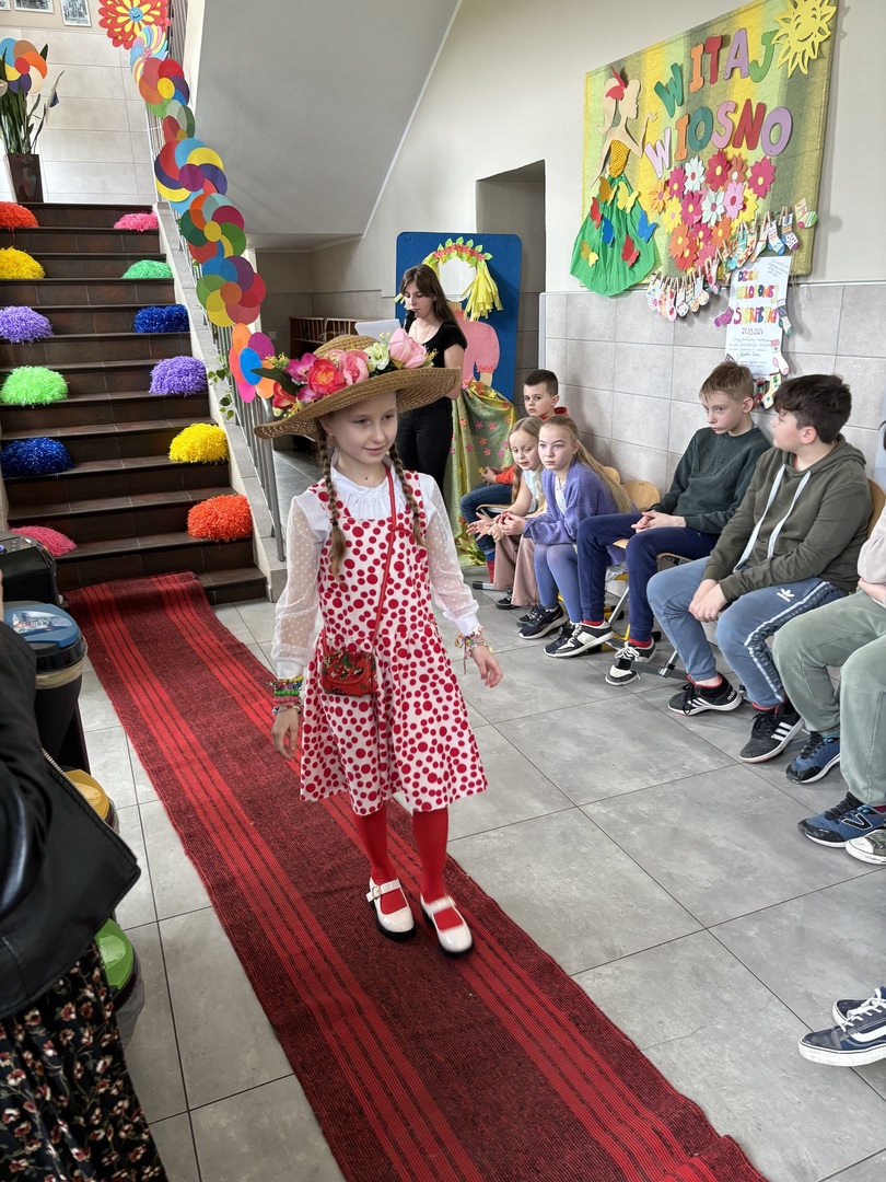 Pierwszy dzień wiosny obfitował w naszej szkole w różne atrakcje. Odbył się między innymi Pokaz Mody Wiosennej PRL, w którym wzięli udział uczniowie z klas I-VIII. Kolorowe stroje, kwiaty, girlandy i wszechobecna zieleń przywoływały nową porę roku. Po pokazie mody, przyznano miejsca najlpeszym uczestnikom.