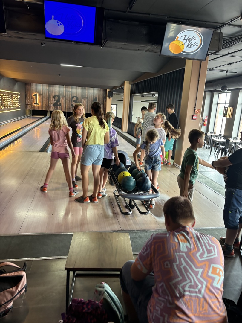 Czwartek to dzień, w którym uczestnicy półkolonii wyjechali na wycieczkę do Ostrowa Wielkopolskiego, a następnie do Kręgielni Kulaj-Hula w Ostrzeszowie. Wizyta na kręgielni była wspaniałą rozrywką dla wszystkich uczestników, a sama gra okazała się niezwykle wciągająca. Pobyt w kręgielni dostarczył dzieciom wielu niezapomnianych wrażeń i emocji, a 2 godziny minęły bardzo szybko.