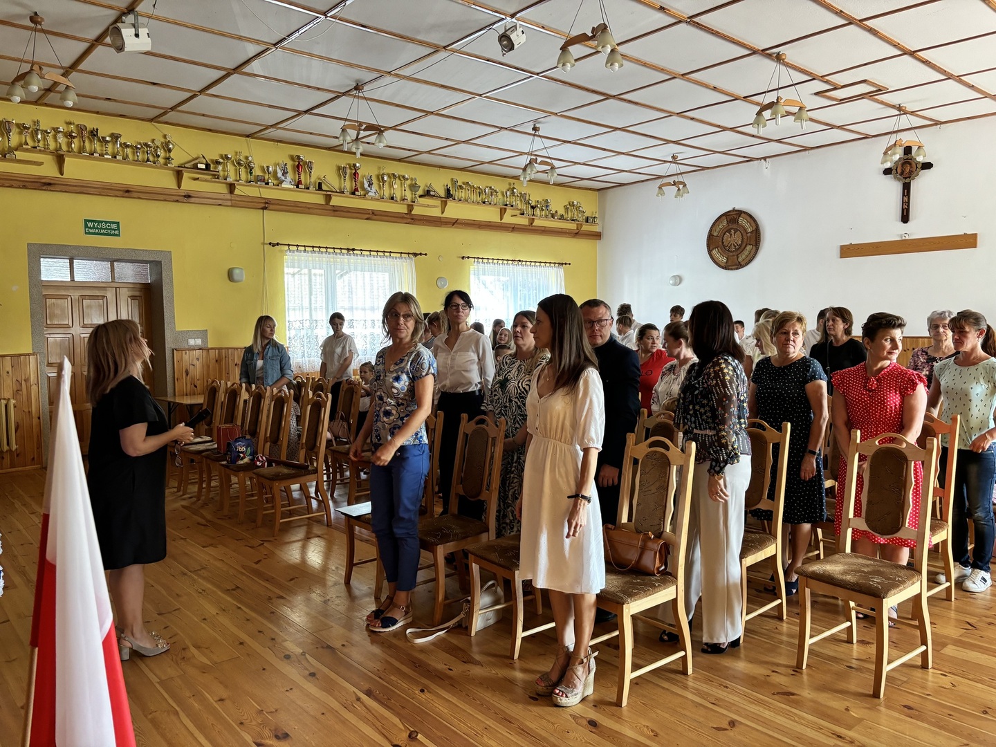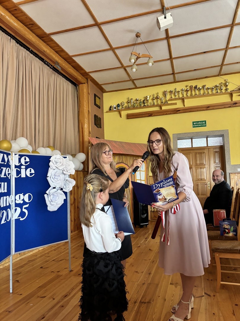 Podczas uroczystości na sali OSP został odśpiewany hymn państwowy , następnie Pani Dyrektor Iwona Gosławska oficjalnie przywitała wszystkich zgromadzonych, a w szczególności tych, którzy po raz pierwszy przywitali szkolne mury. Wszystkim uczniom życzyła, aby ten nowy rok szkolny był czasem odkrywania nowych pasji i zainteresowań, budowania wartościowych relacji koleżeńskich, a podjęty wysiłek i trud przełożył się na wyniki, aby mogli cieszyć się zdobytą wiedzą oraz umiejętnościami. Życzyła także wszystkim nauczycielom i pracownikom placówki wiary we własne możliwości i zapału do pracy, rodzicom zaś cierpliwości i powodów do dumy ze swoich pociech.