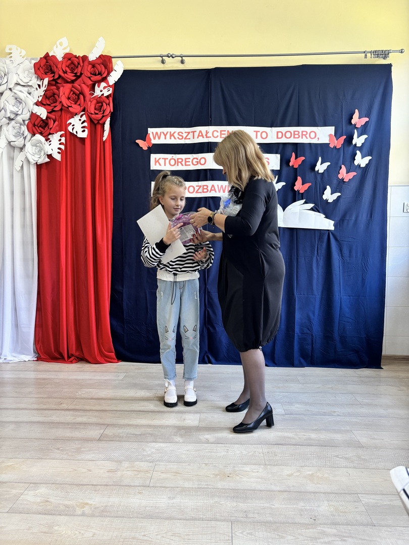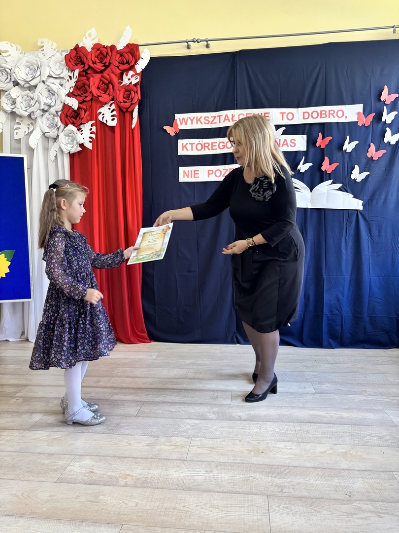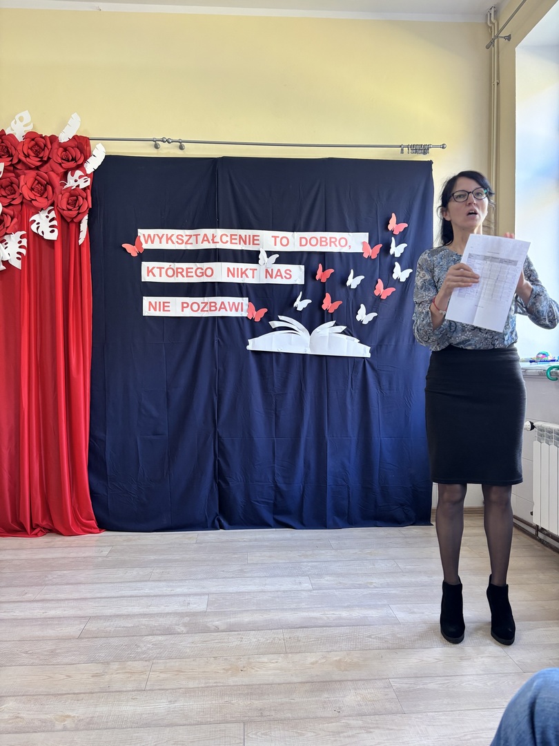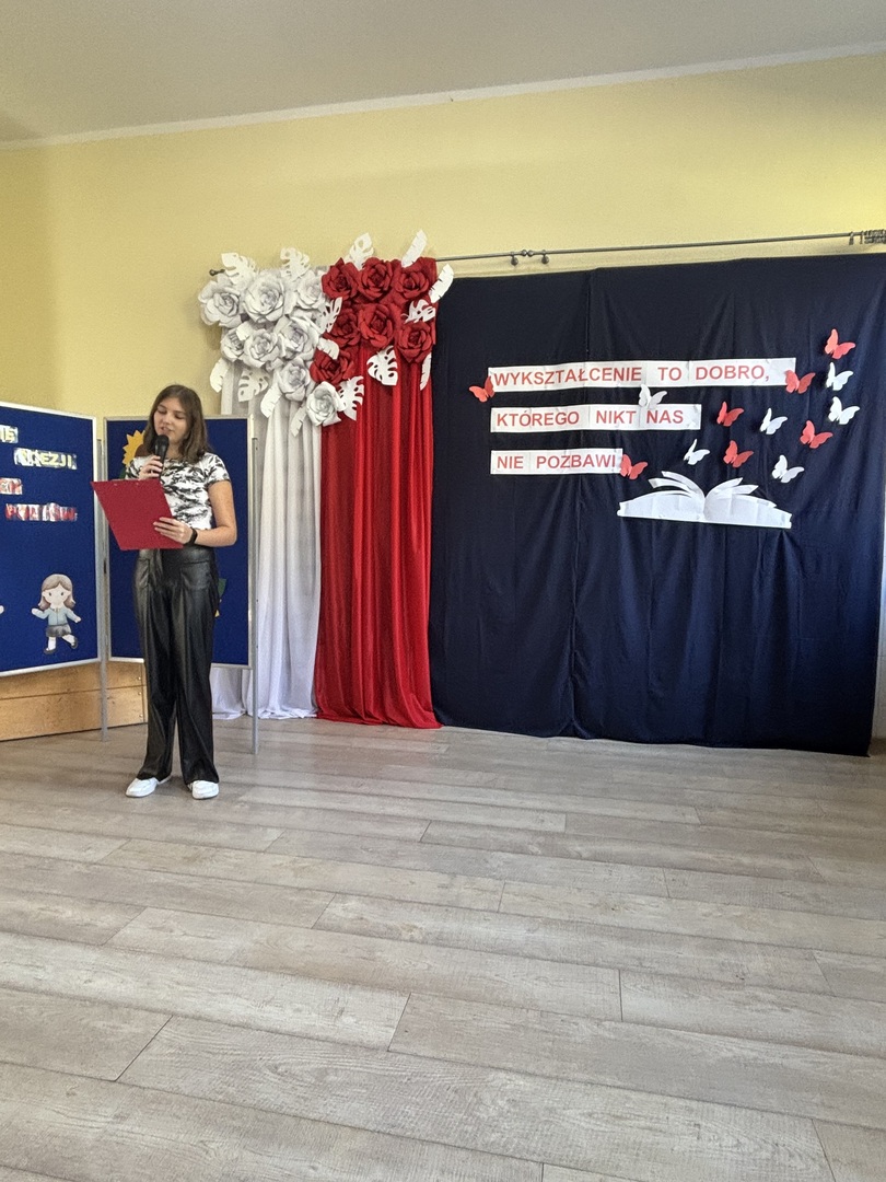 Dzień Edukacji Narodowej przypadł w tym roku w poniedziałek. Od samego rana uczniowie wcielili się w rolę nauczycieli i uczyli młodszych kolegów oraz koleżanki. O godz 10:00 wszyscy braliśmy udział w akademii z okazji tego dnia, po czym odbył się konkurs recytatorski "W KRAINIE POLSKICH POETÓW".