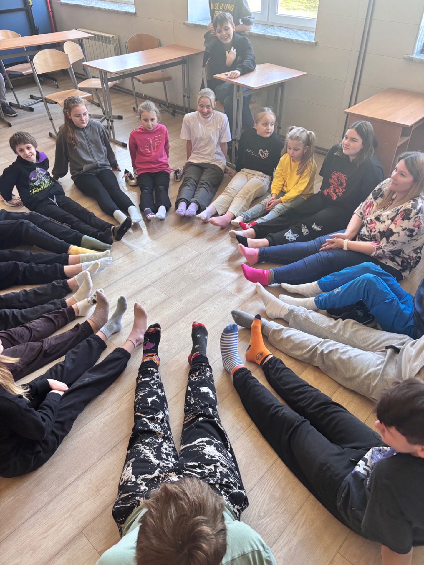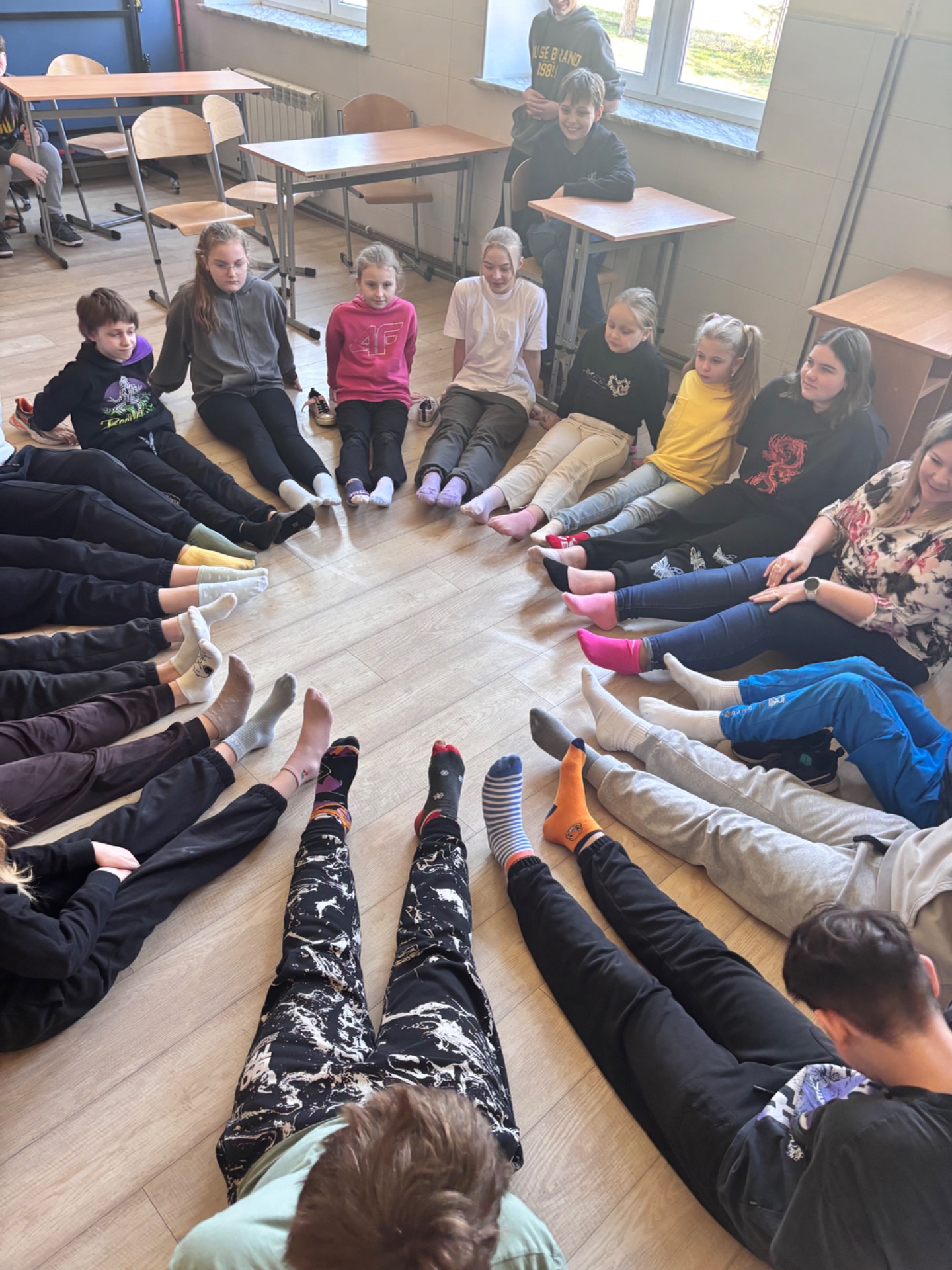 Czwartek- Dzień kolorowej skarpetki. W tym dniu dzieci poprzez ubranie kolorowych skarpet nie do pary solidaryzowały się z dziećmi, które mają jeden chromosom więcej.