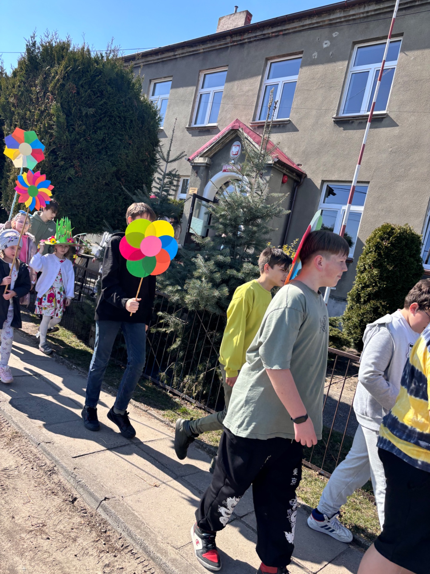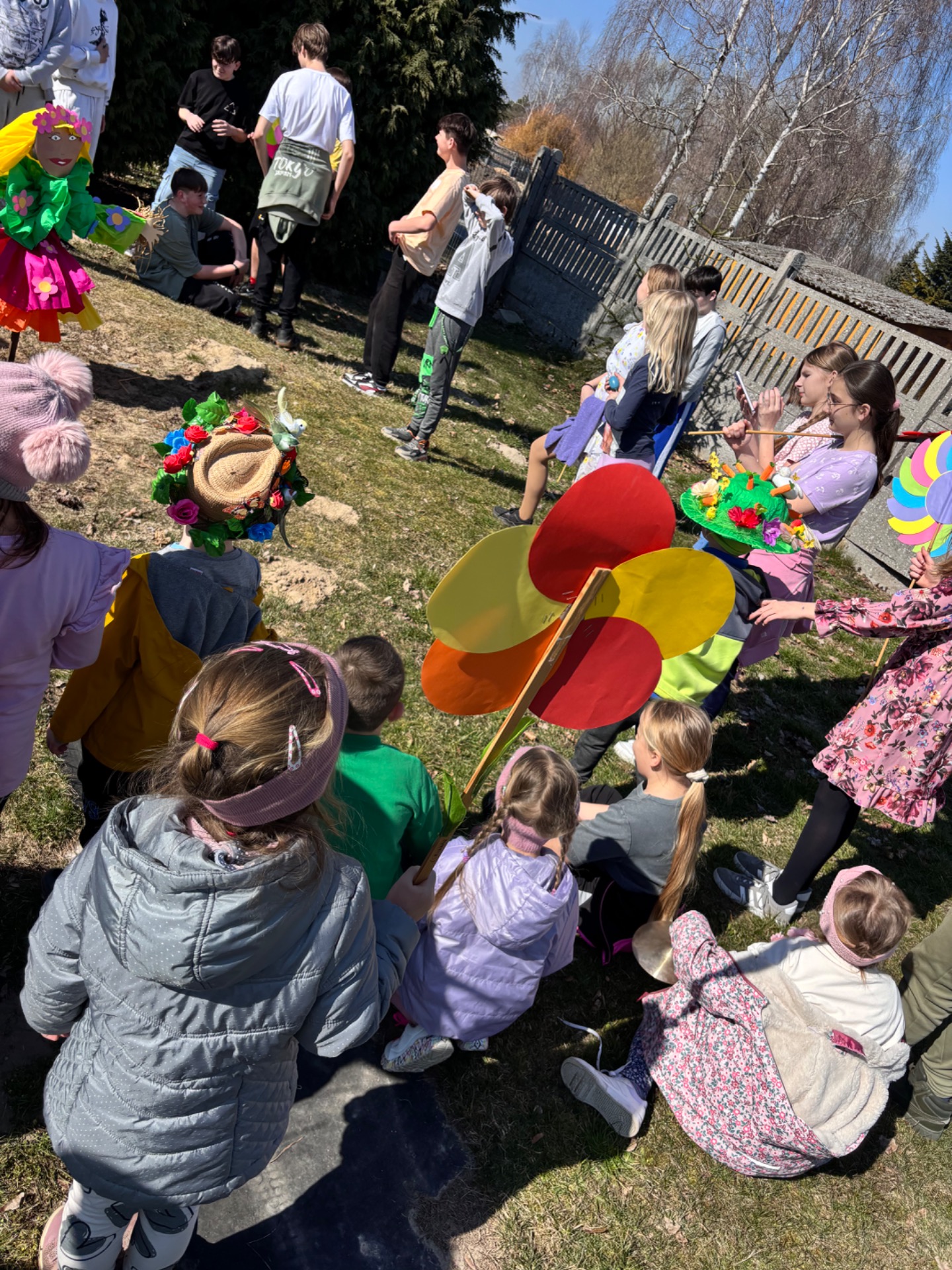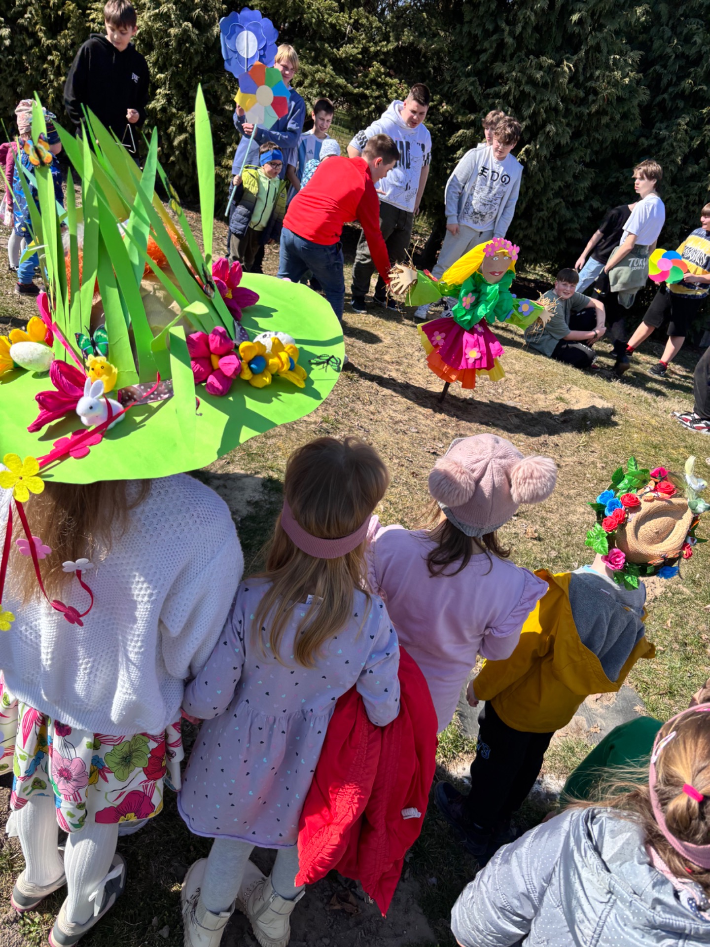 W piątek odbył się konkurs na najpiękniejsze wiosenne kapelusze, które zostały zaprezentowane podczas spaceru po najbliższej okolicy. Towarzyszyła nam też zimowa panna – Marzanna, która została przygotowana przez uczniów a następnie spalona na znak powitania wiosny.
