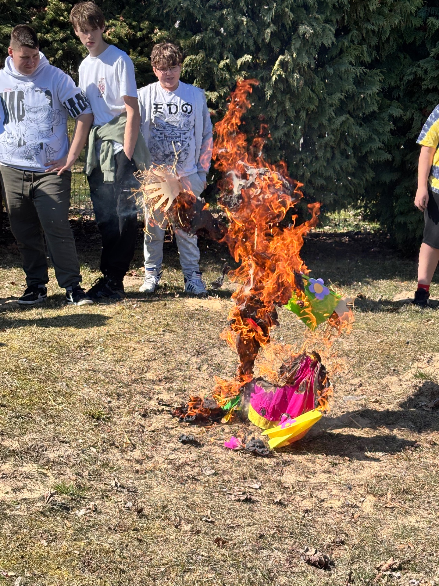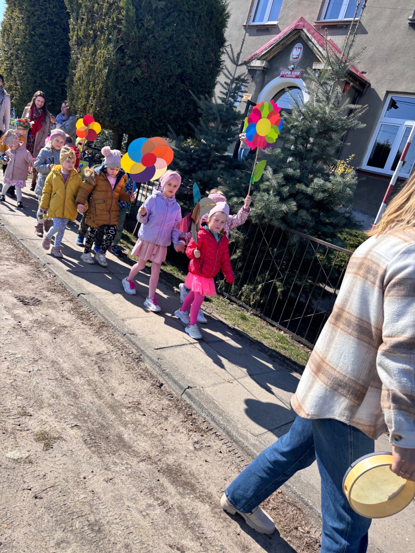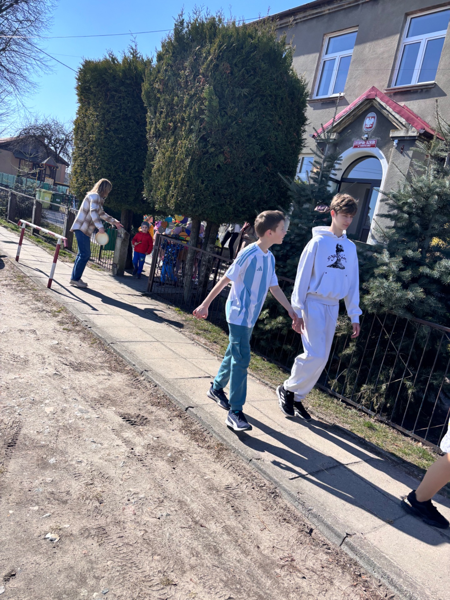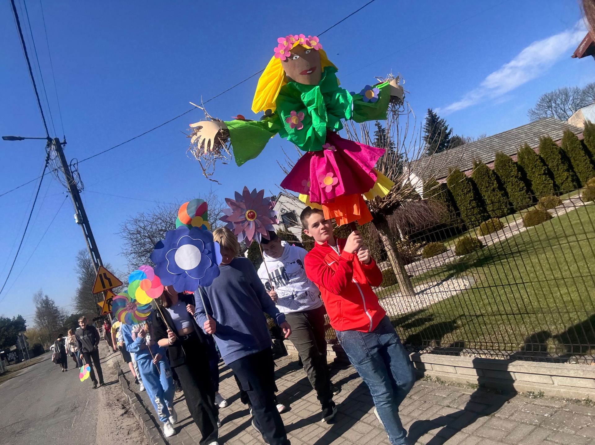W piątek odbył się konkurs na najpiękniejsze wiosenne kapelusze, które zostały zaprezentowane podczas spaceru po najbliższej okolicy. Towarzyszyła nam też zimowa panna – Marzanna, która została przygotowana przez uczniów a następnie spalona na znak powitania wiosny.