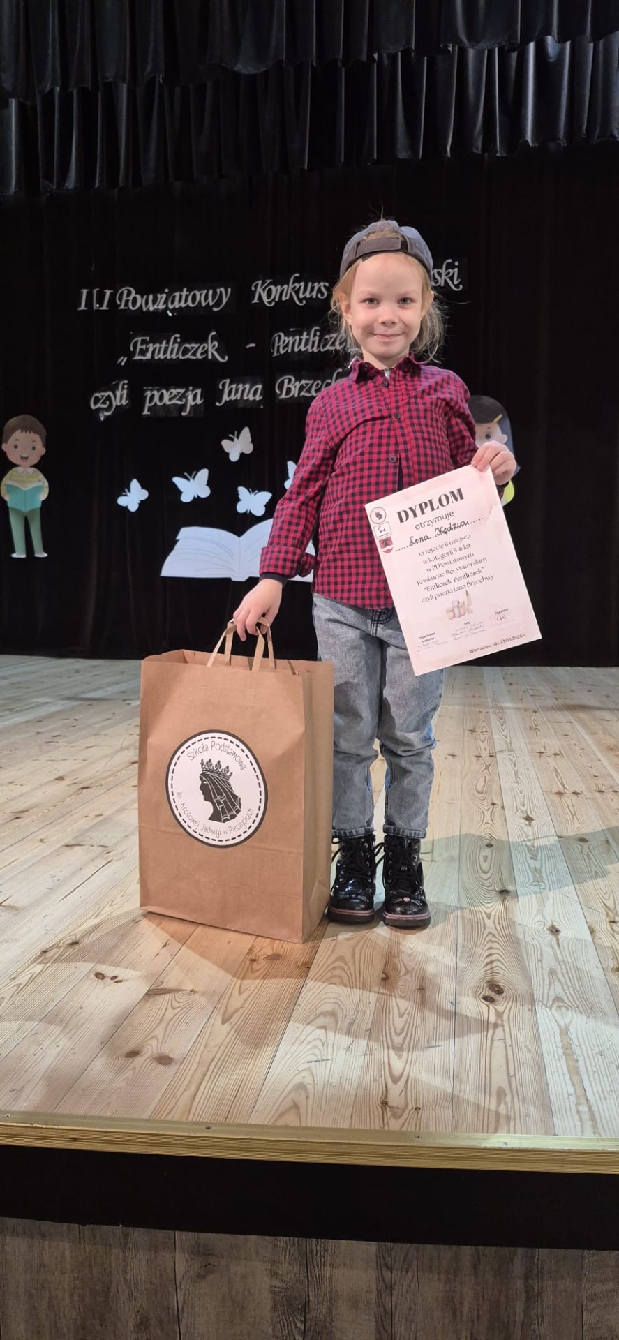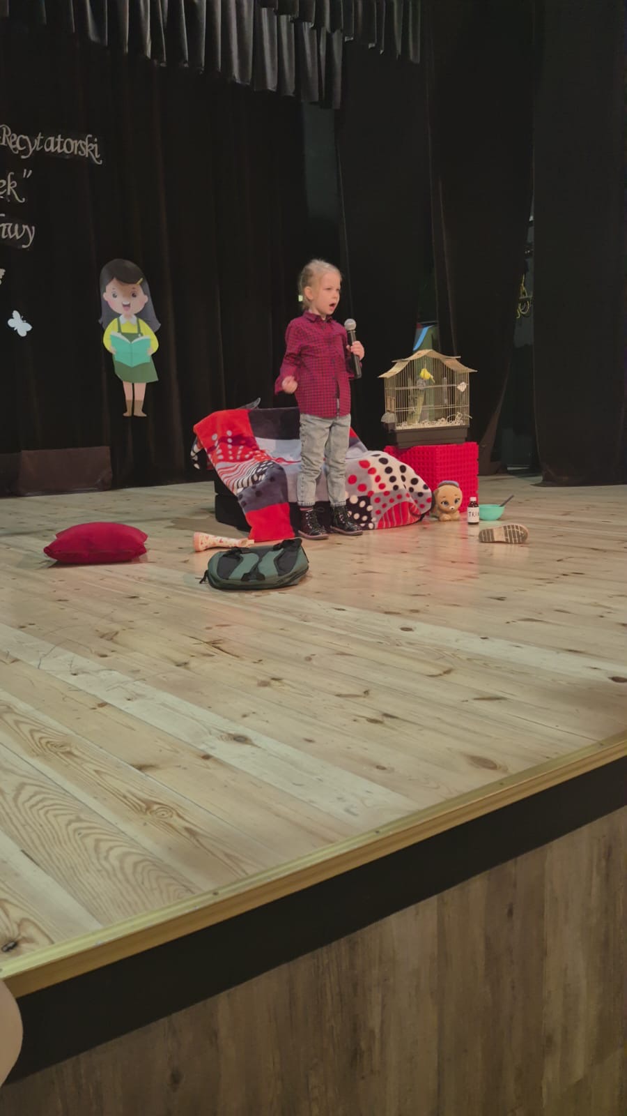 W czwartek 27 marca 2025r. uczeninca naszego przedszkola- Lena, wzięła udział w powiatowym konkursie recytatorskim w Wieruszowie.