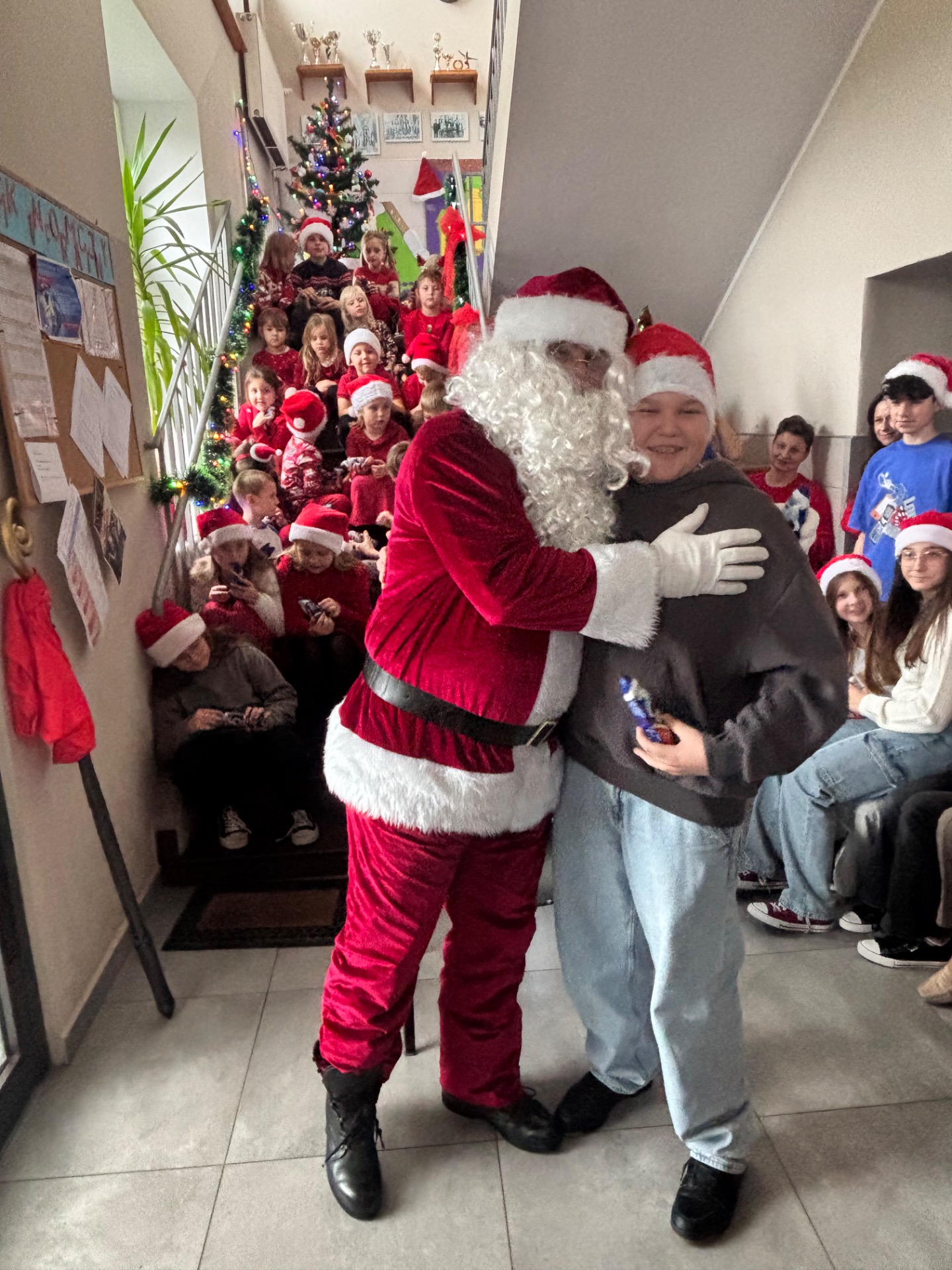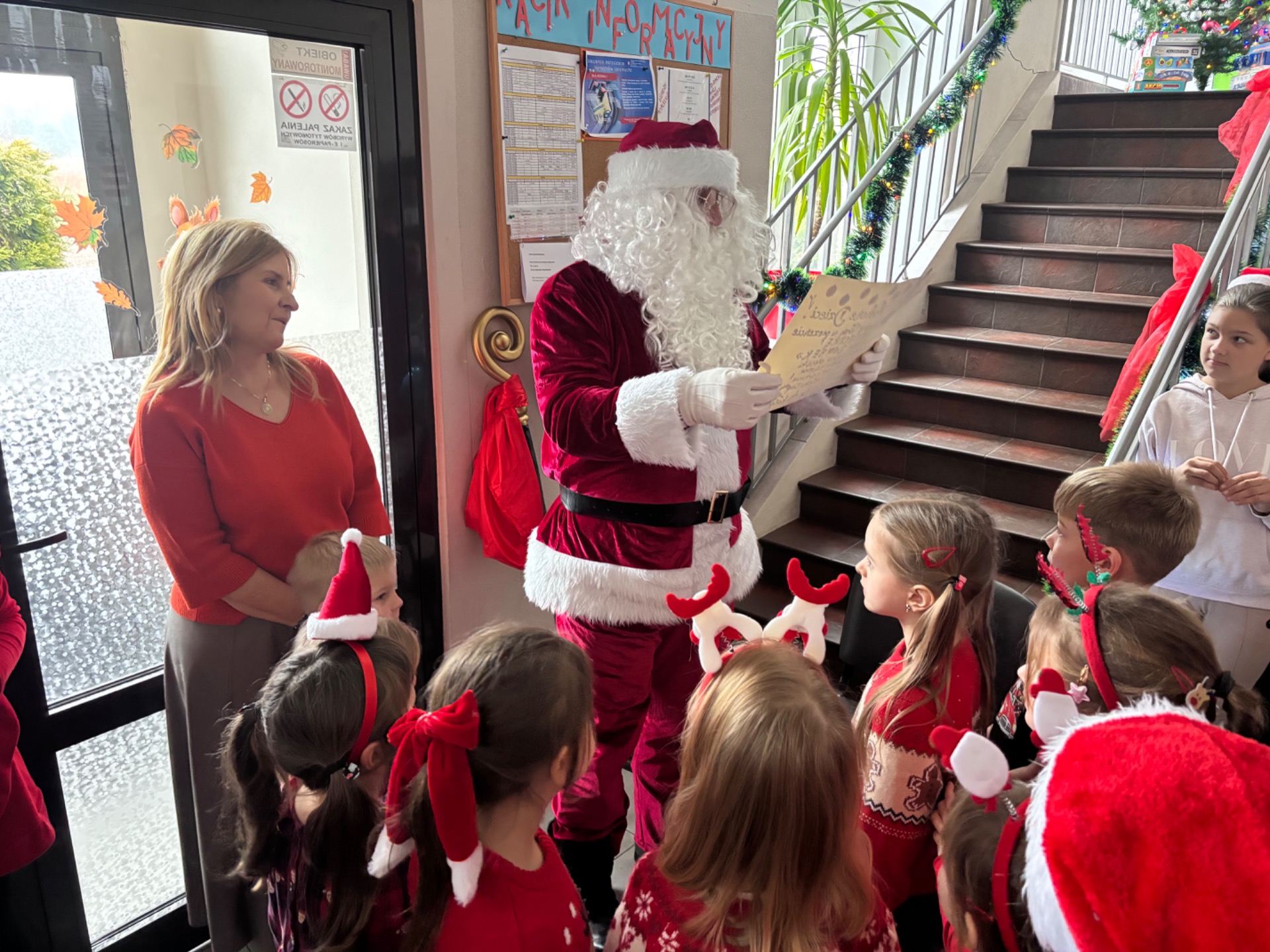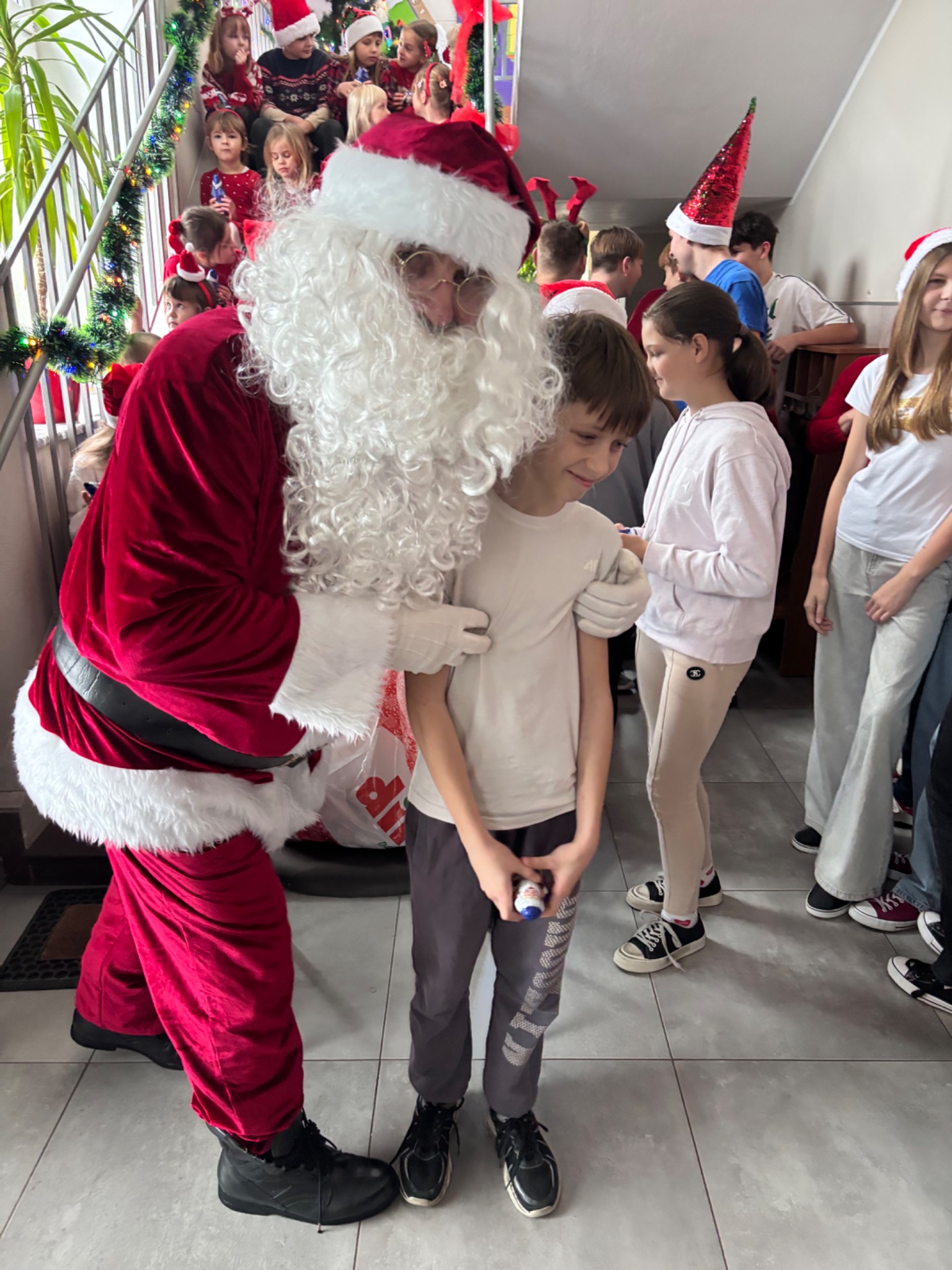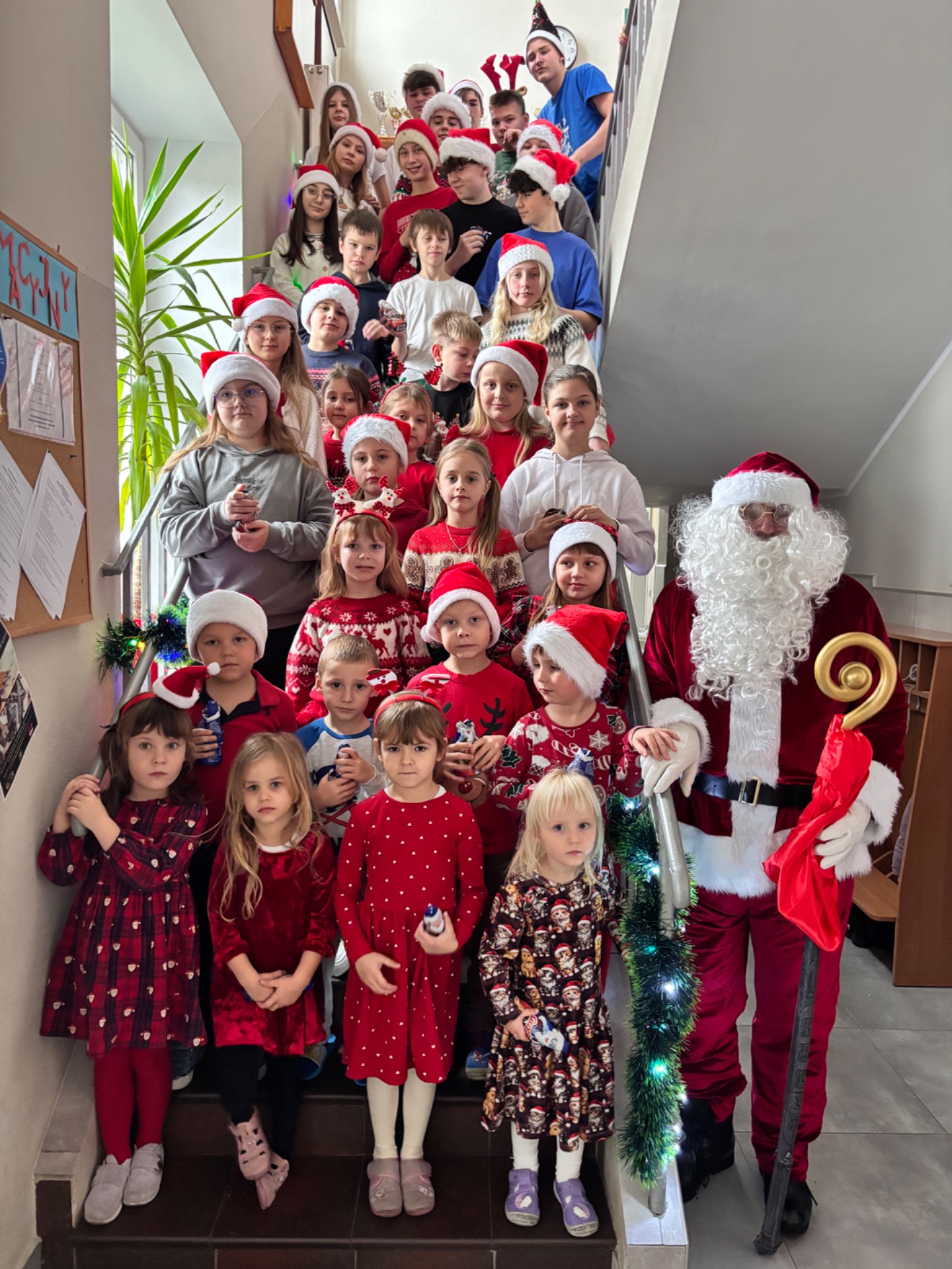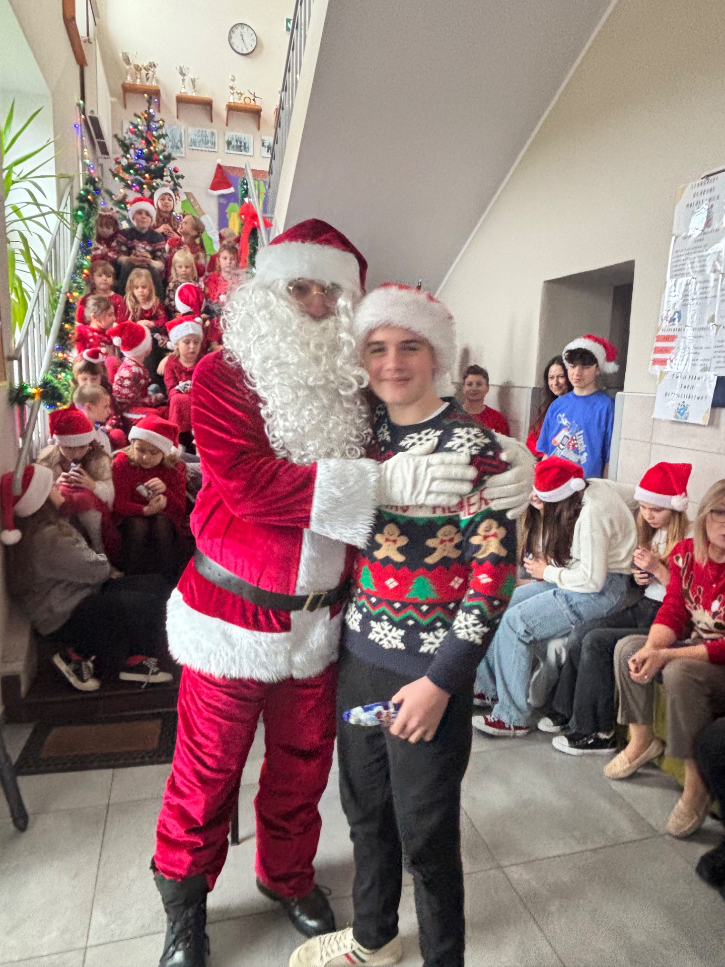W tym wyjątkowym grudniowym dniu w naszej szkole i przedszkolu pojawił się długo wyczekiwany gość – Święty Mikołaj. Jego wizyta wywołała mnóstwo emocji, uśmiechu i prawdziwej dziecięcej radości.