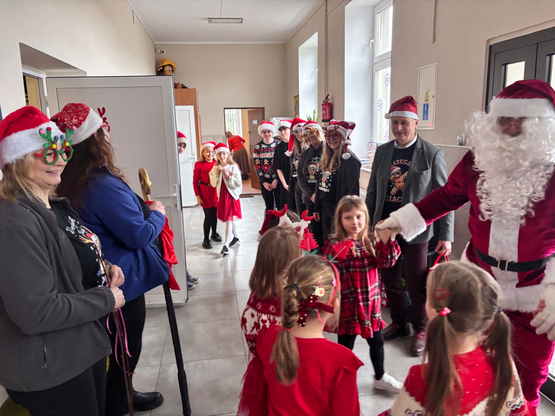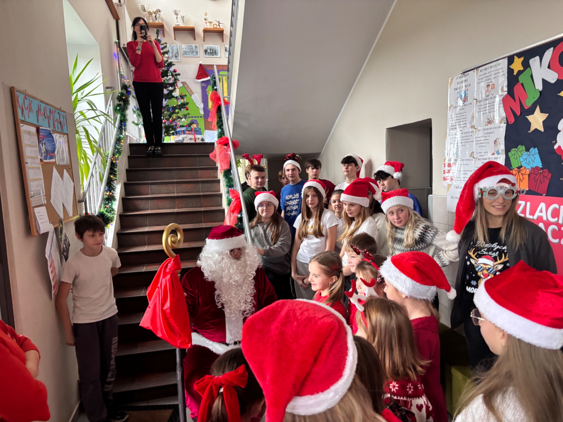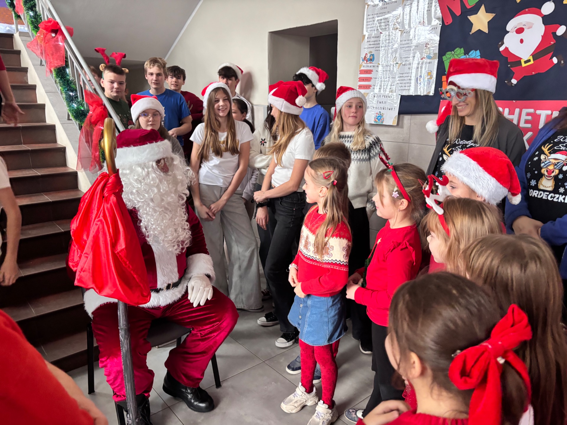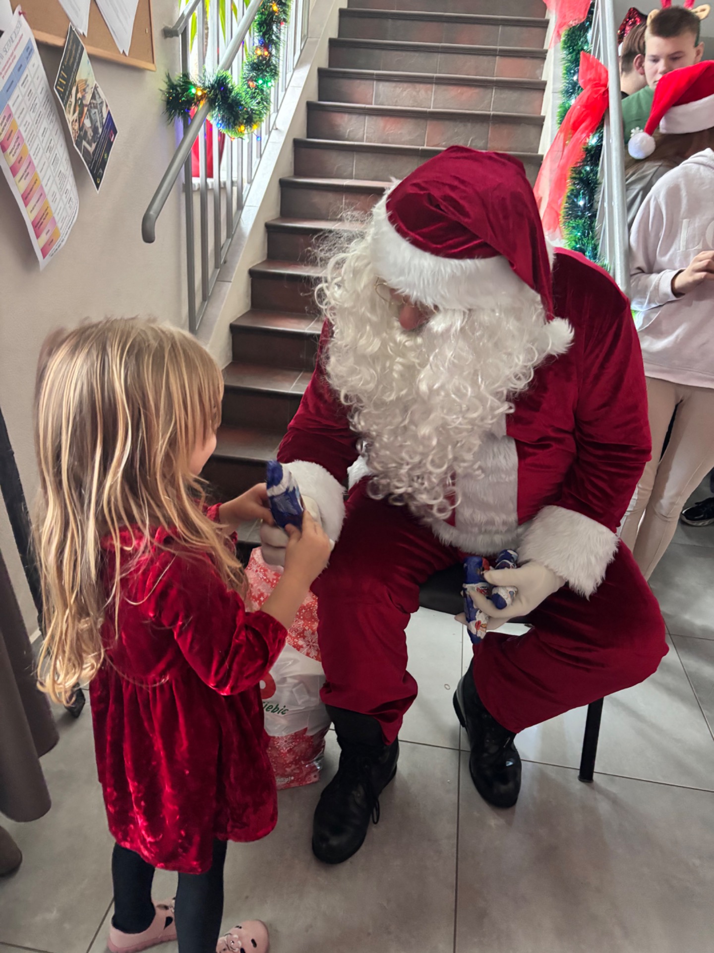W tym wyjątkowym grudniowym dniu w naszej szkole i przedszkolu pojawił się długo wyczekiwany gość – Święty Mikołaj. Jego wizyta wywołała mnóstwo emocji, uśmiechu i prawdziwej dziecięcej radości.