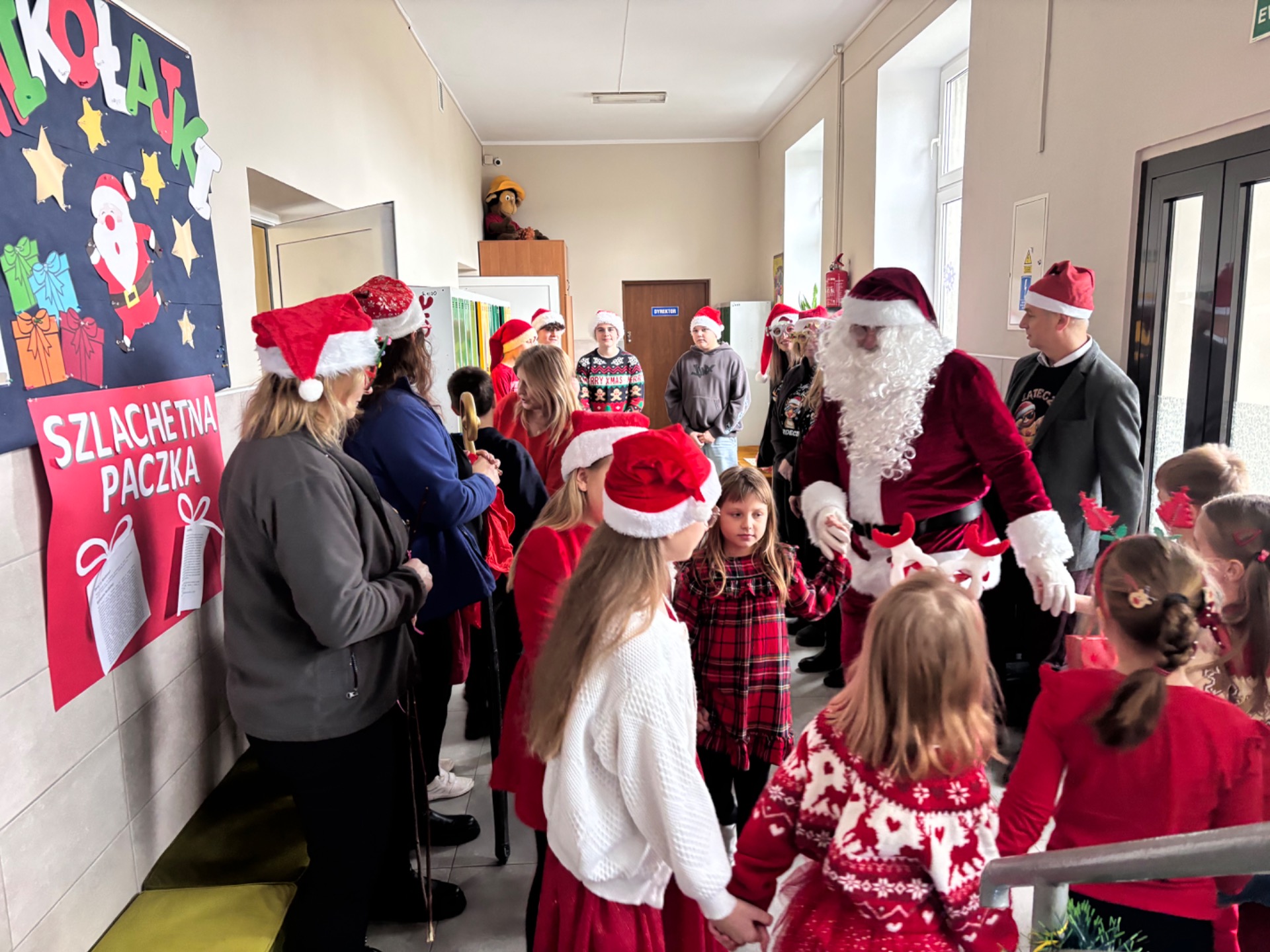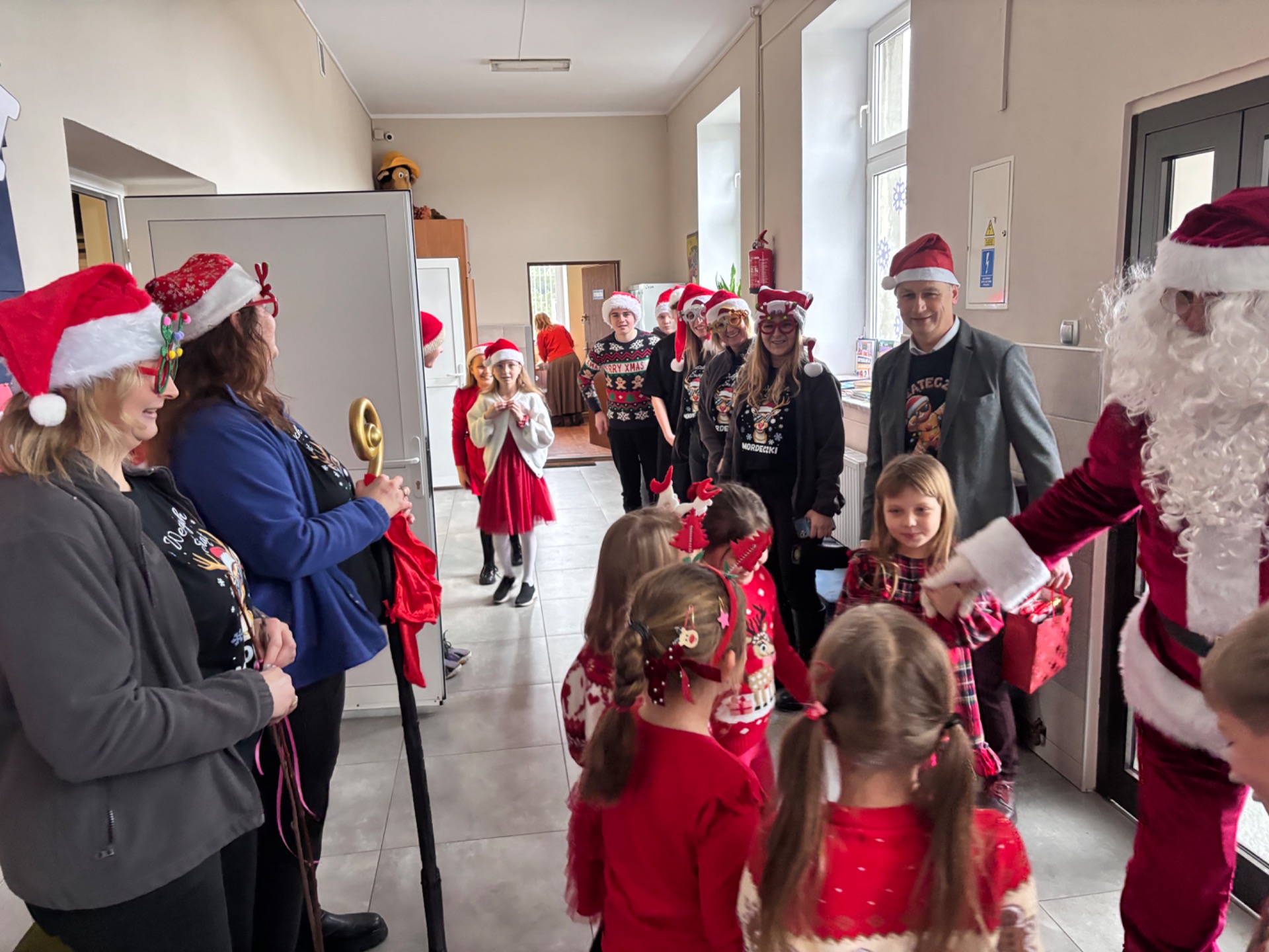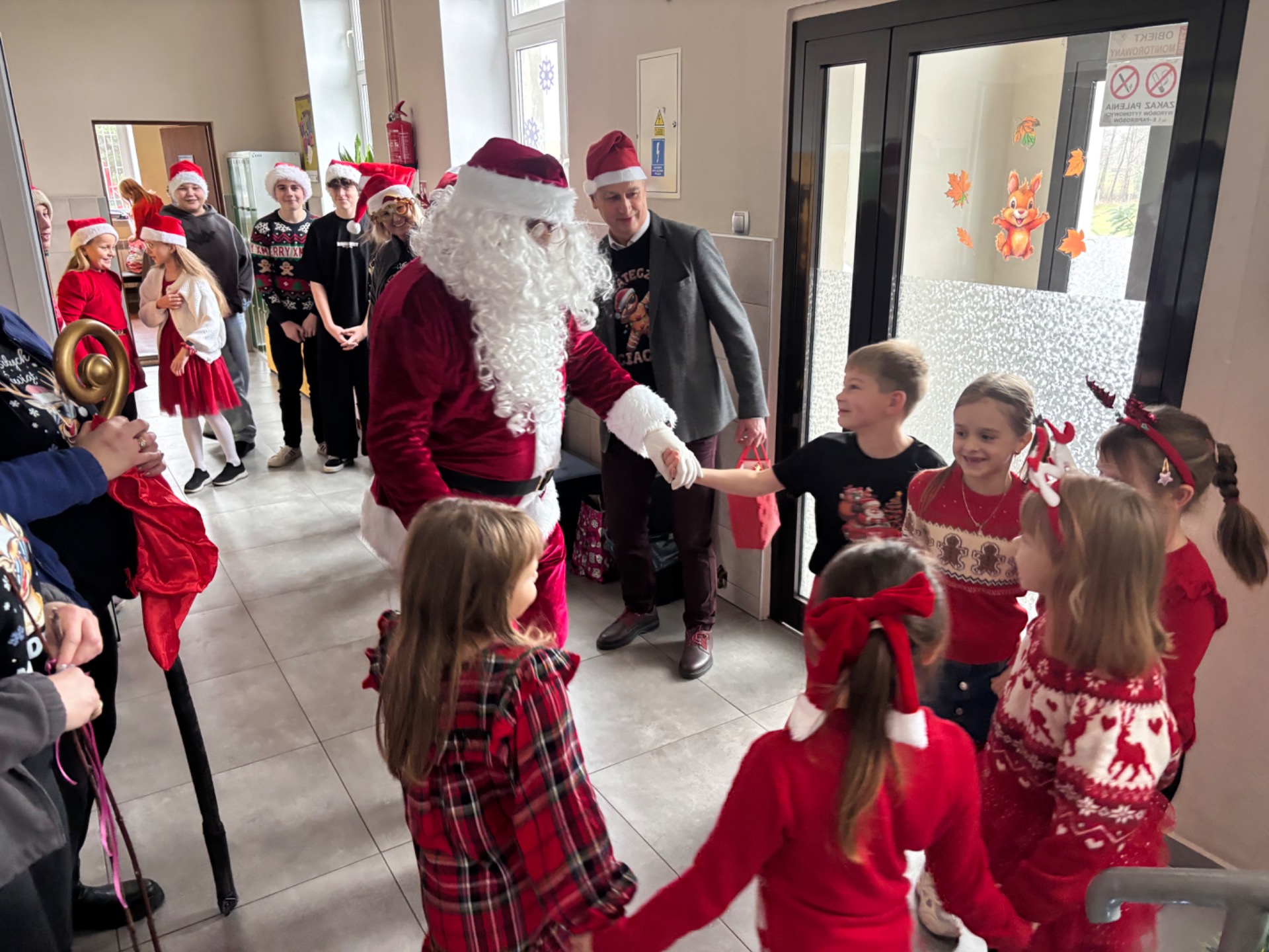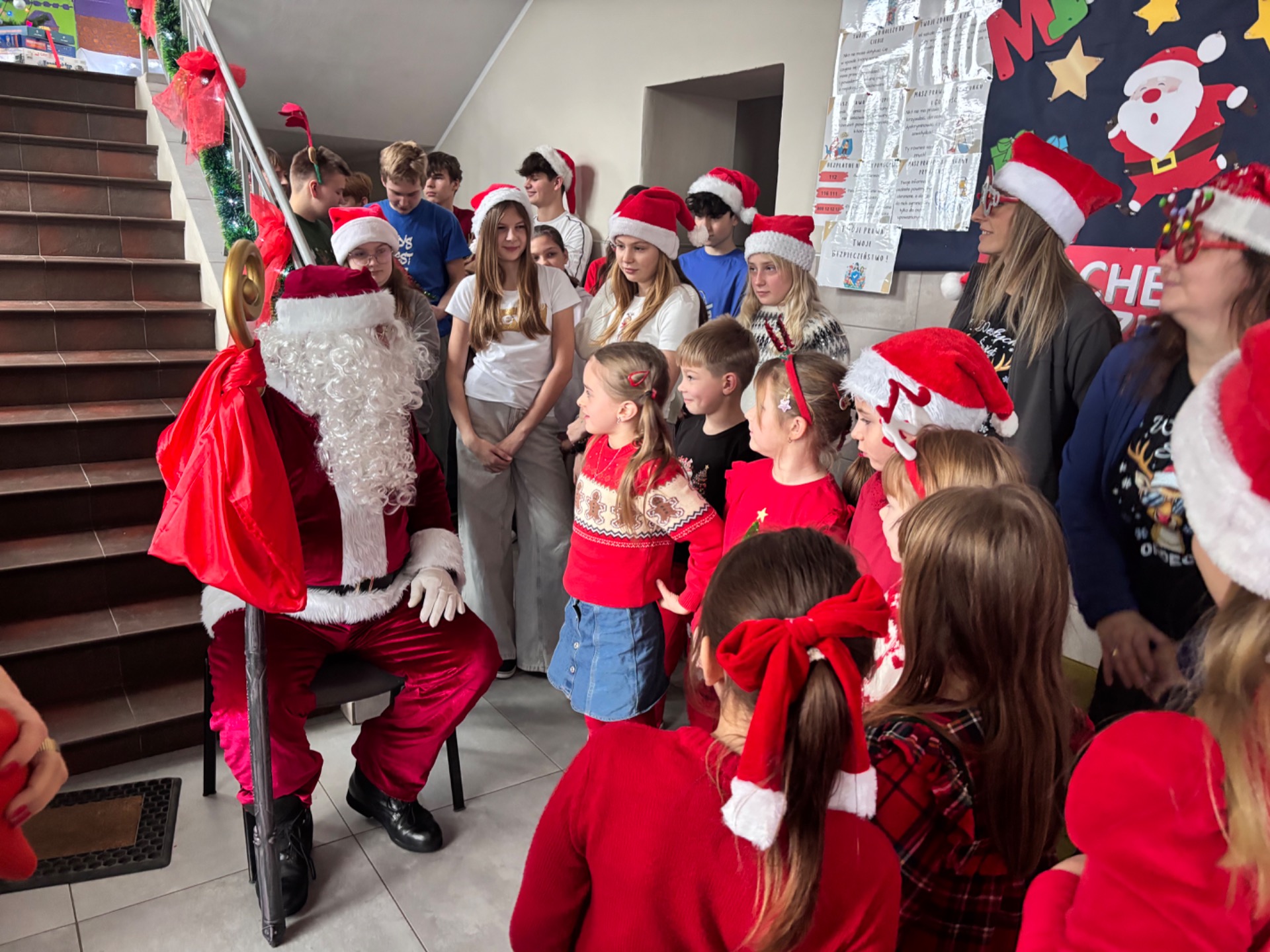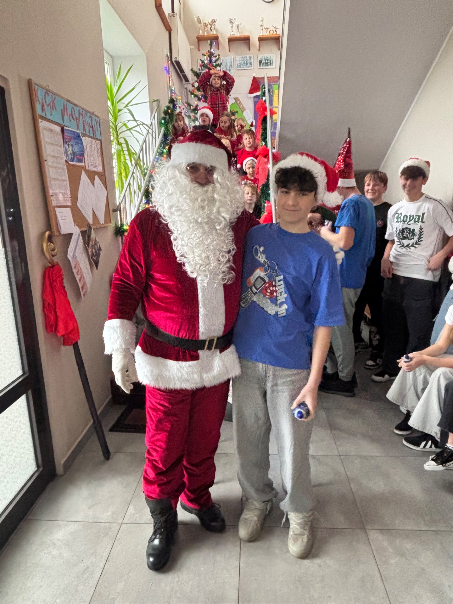 W tym wyjątkowym grudniowym dniu w naszej szkole i przedszkolu pojawił się długo wyczekiwany gość – Święty Mikołaj. Jego wizyta wywołała mnóstwo emocji, uśmiechu i prawdziwej dziecięcej radości.