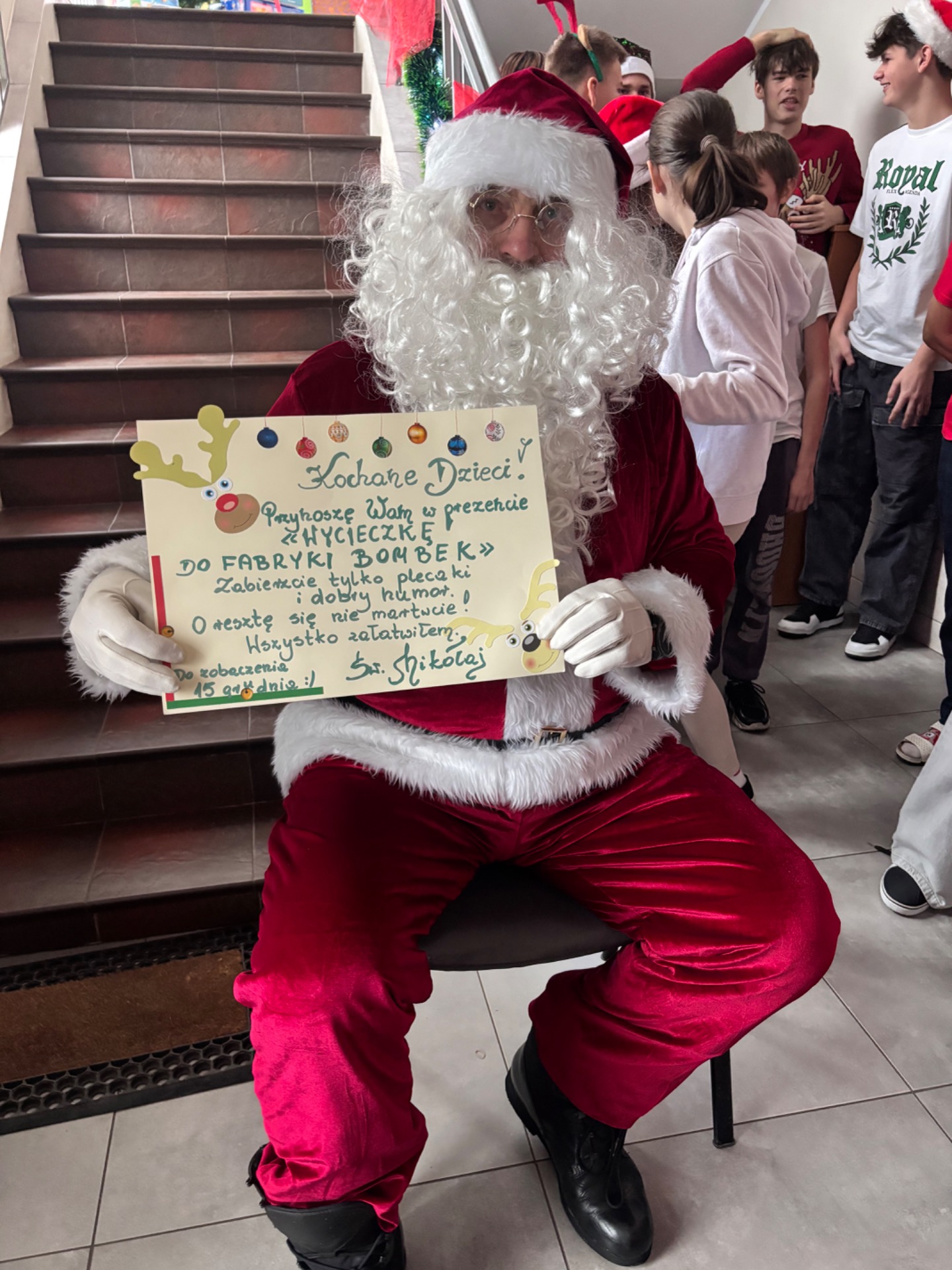 Ku wielkiemu zaskoczeniu wszystkich, Mikołaj miał jeszcze jedną niespodziankę! Zaprosił dzieci na wyjątkową wycieczkę do fabryki bombek. Pomysł wywołał ogromną radość, a uczniowie i przedszkolaki już zaczęli snuć marzenia o tym, jakie ozdoby będą mieli okazję zobaczyć, a może nawet stworzyć własne bombki.