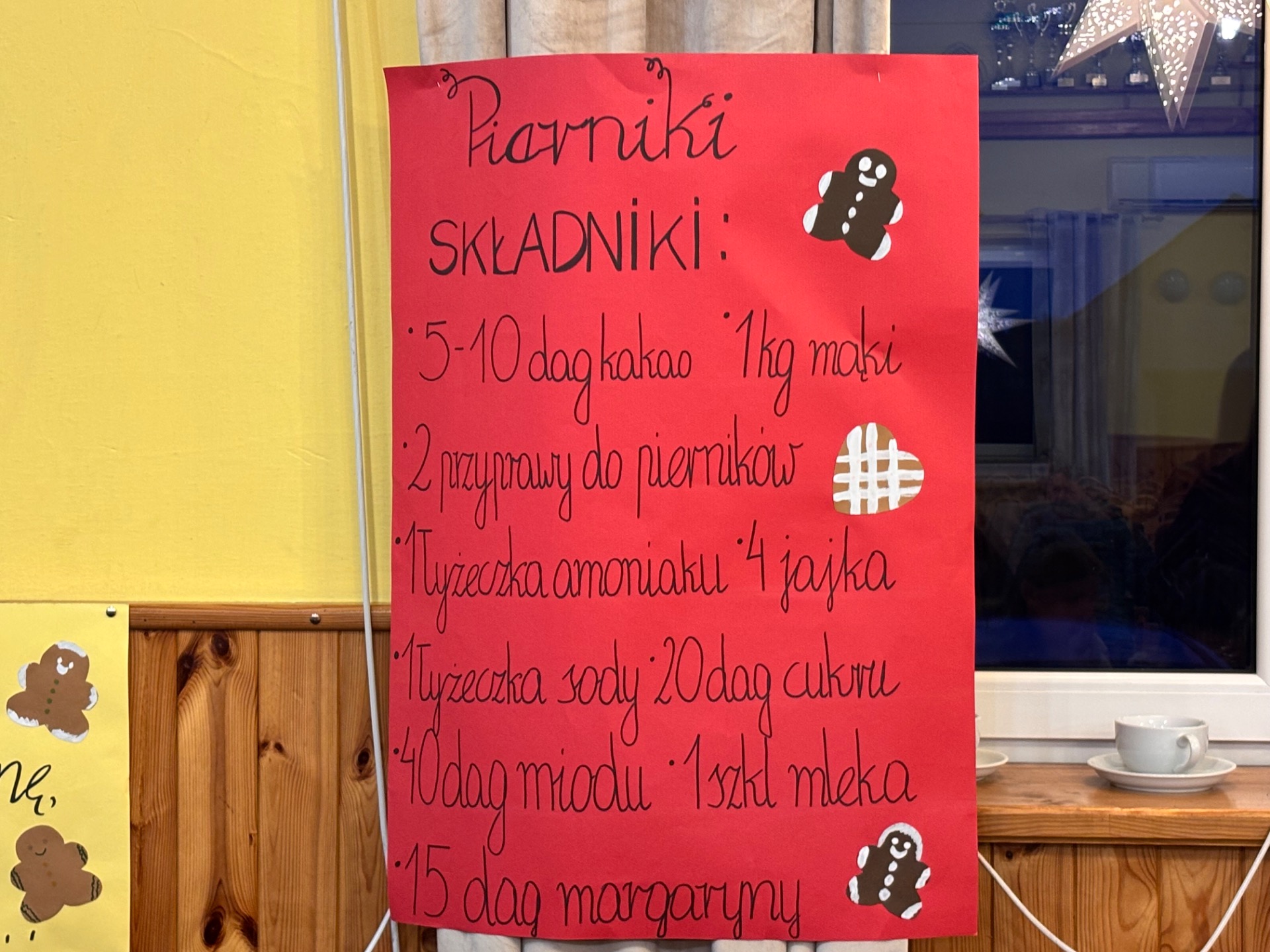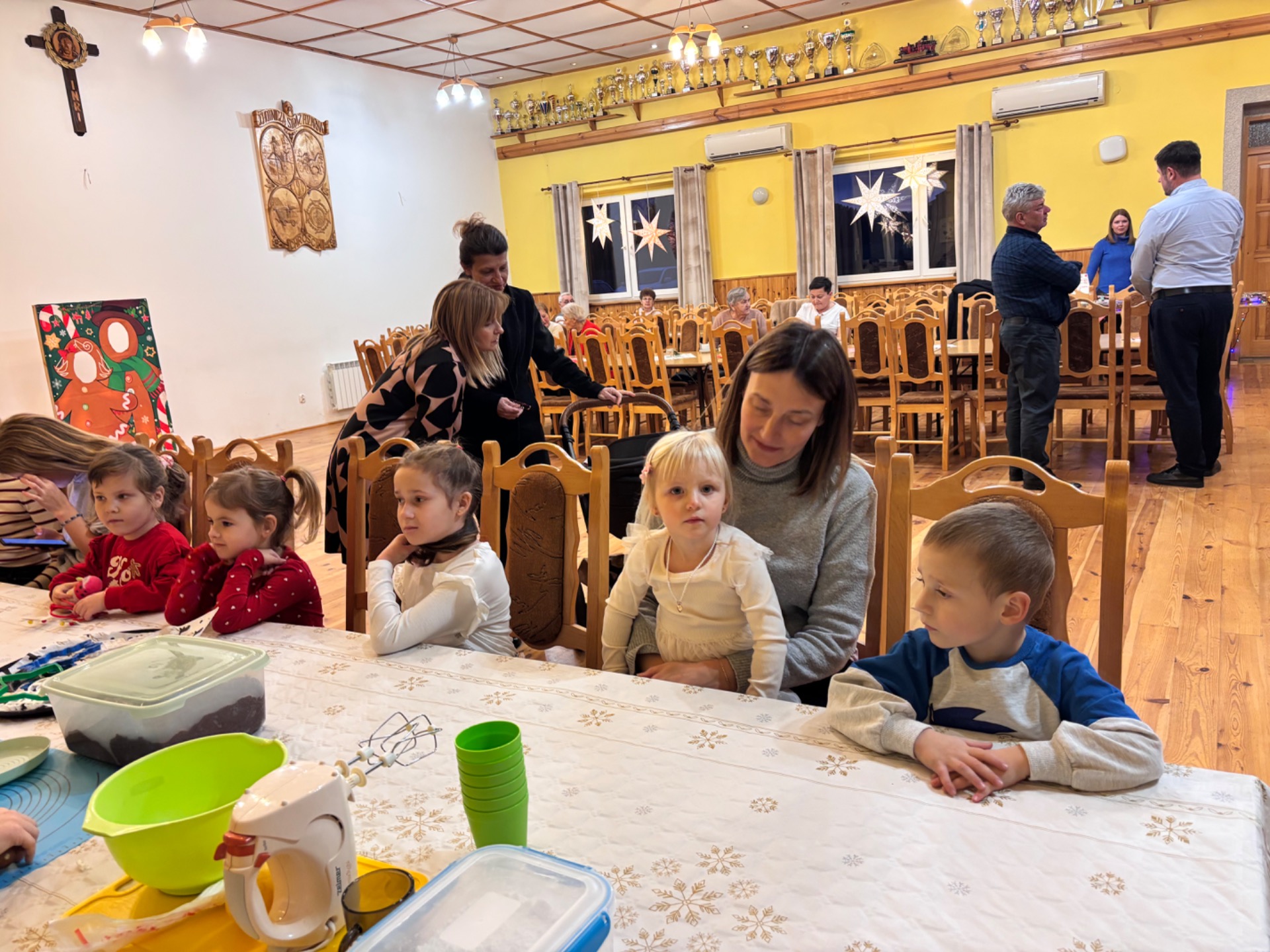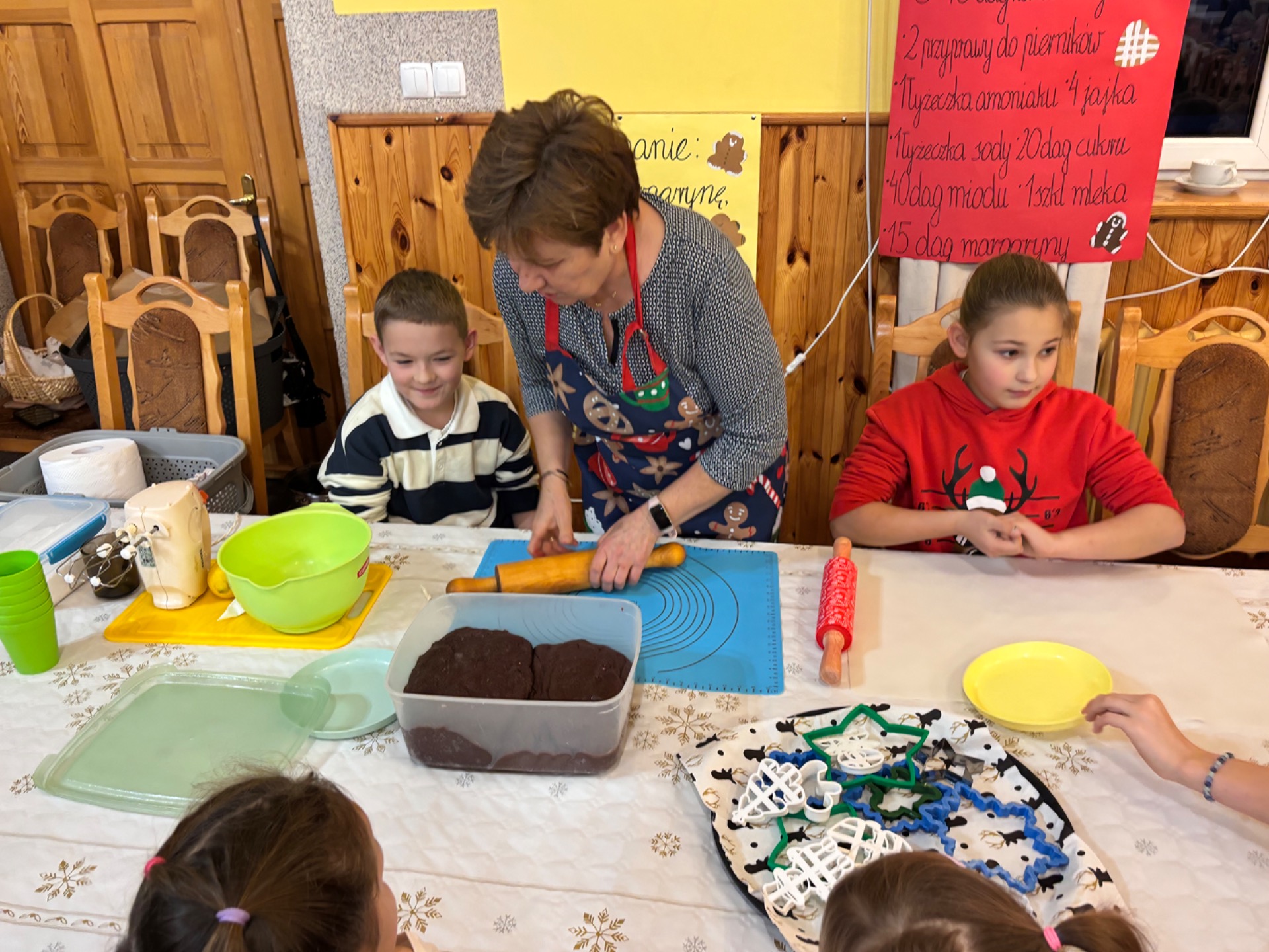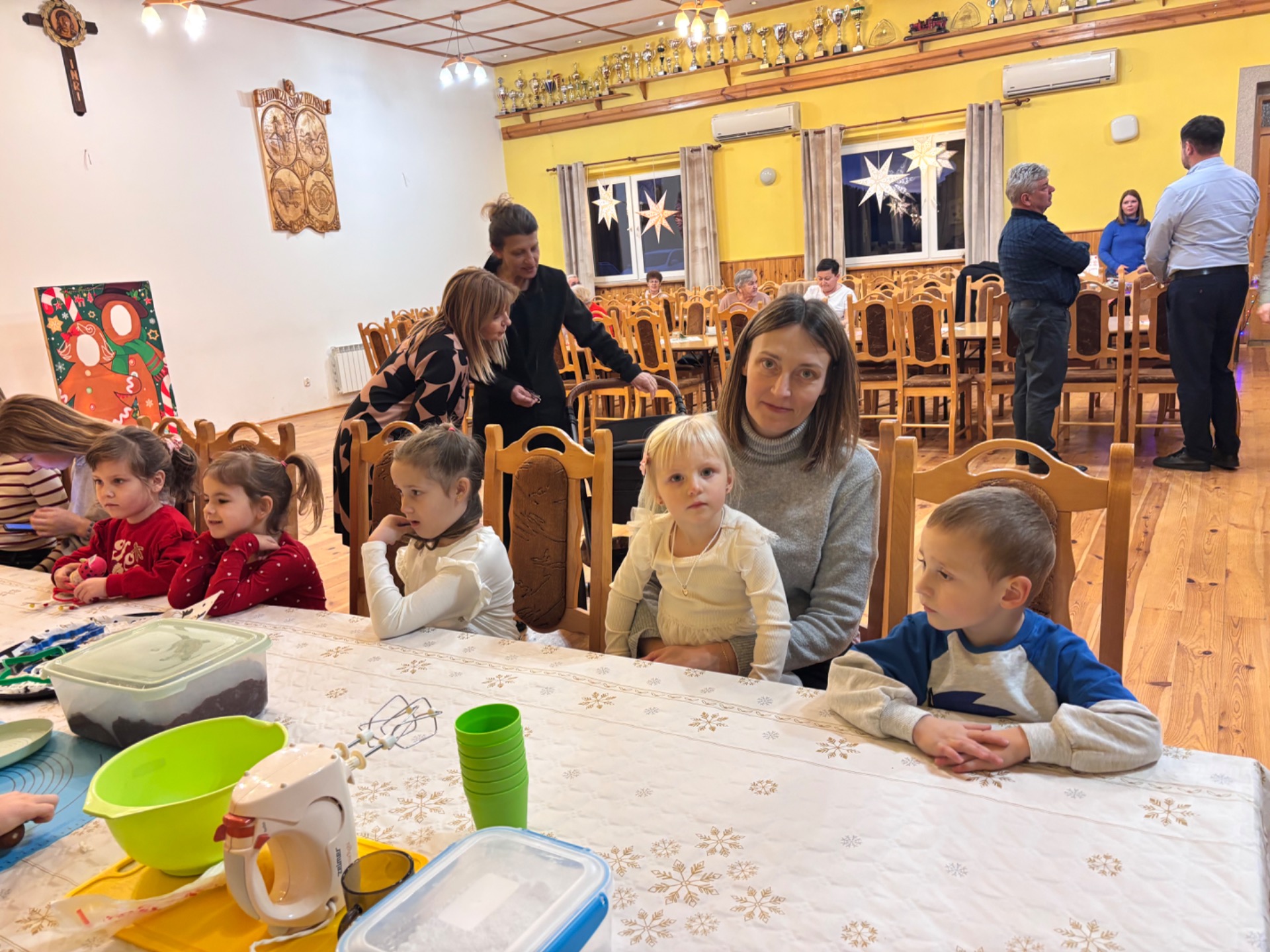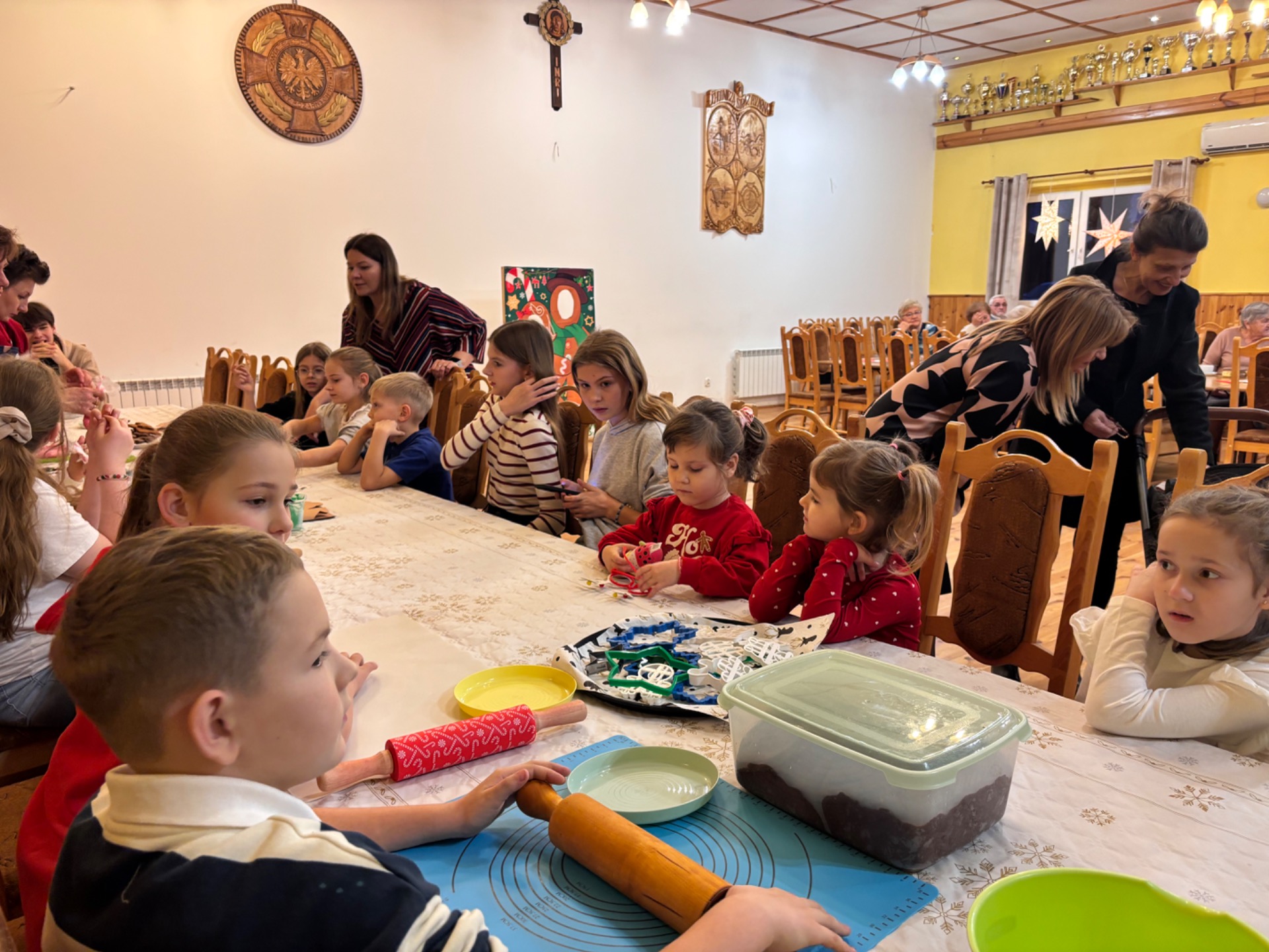 Z kolei ogromnych zainteresowaniem wśród najmłodszych gości cieszyły się warsztaty piernikowe, prowadzone przez Panią Basię i Panią Maritę. Dzieciaki z wielką pieczołowitością wycinały pierniki, które po upieczeniu własnoręcznie dekorowały, tworząc pyszne, pachnące dzieła sztuki. Najładniejsze zostały wystawione do konkursu, zaśnad jego rozstrzygnięciem pocił się nie kto inny, jak sam Mikołaj, który pojawił się na miejscu, aby obdarować dzieciaki i dorosłych słodkimi upominkami. Co odważniejsi nie odmówili sobie również pamiątkowego zdjęcia z przemiłym gościem.