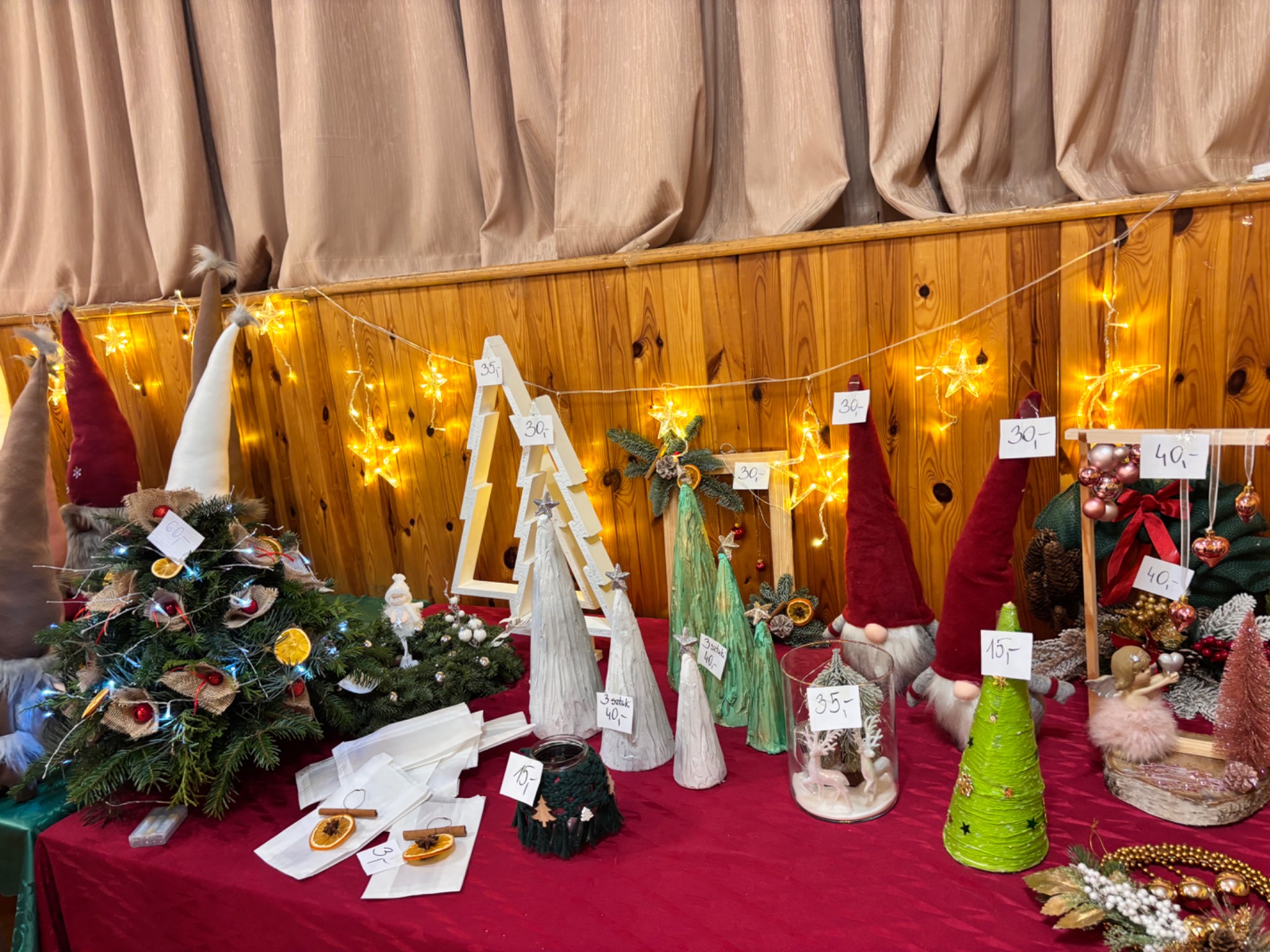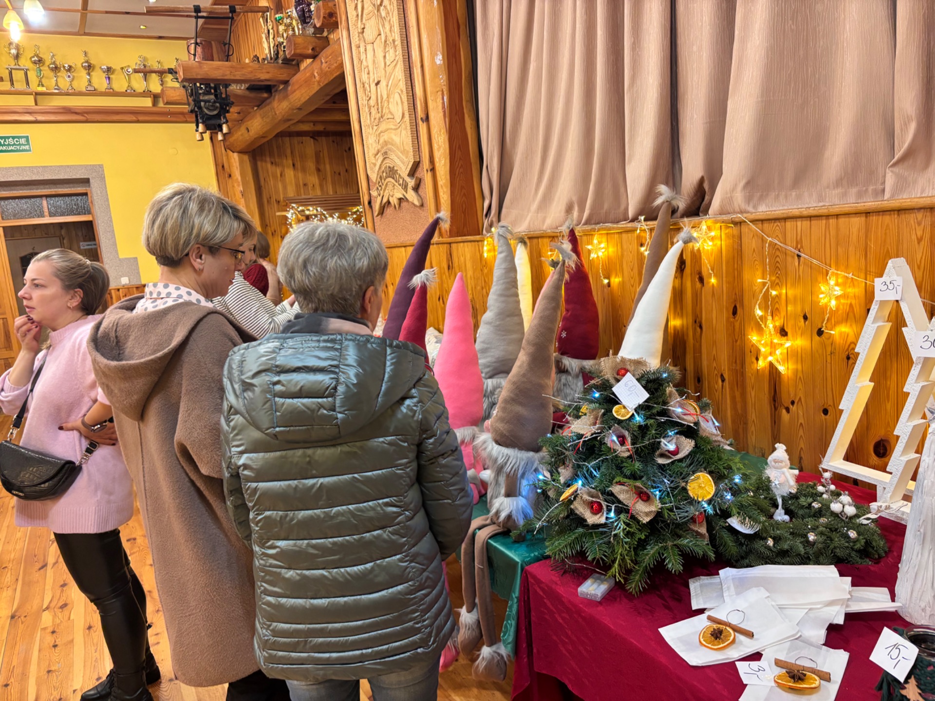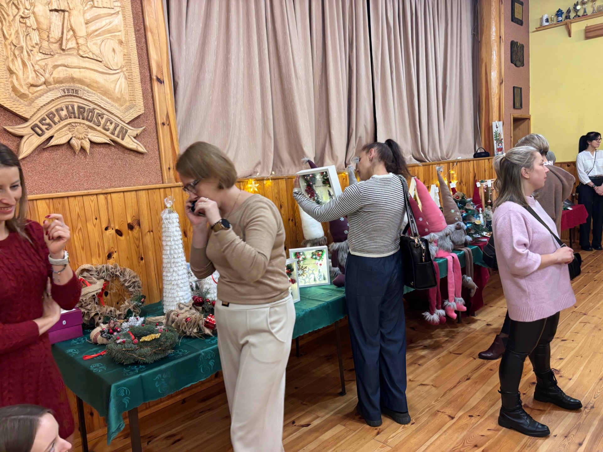 Uczestnicy kiermaszu, którzy mieli ochotę przyjemnie spędzić grudniowe, niedzielne popołudnie, mogli podziwiać i zachwycać się wystawą stroików i ozdób świątecznych,wykonanych przez uczniów szkoły oraz mieszkańców zaprzyjaźnionego Domu Pomocy Społecznej Chróścin – Wieś. Trzeba przyznać, iż kreatywność twórców wszystkich prac zasłużyła na wyrazy uznania, których zresztą nie brakowało, a niejedna z nich stała się inspiracją do tegorocznego, świątecznego wystroju.