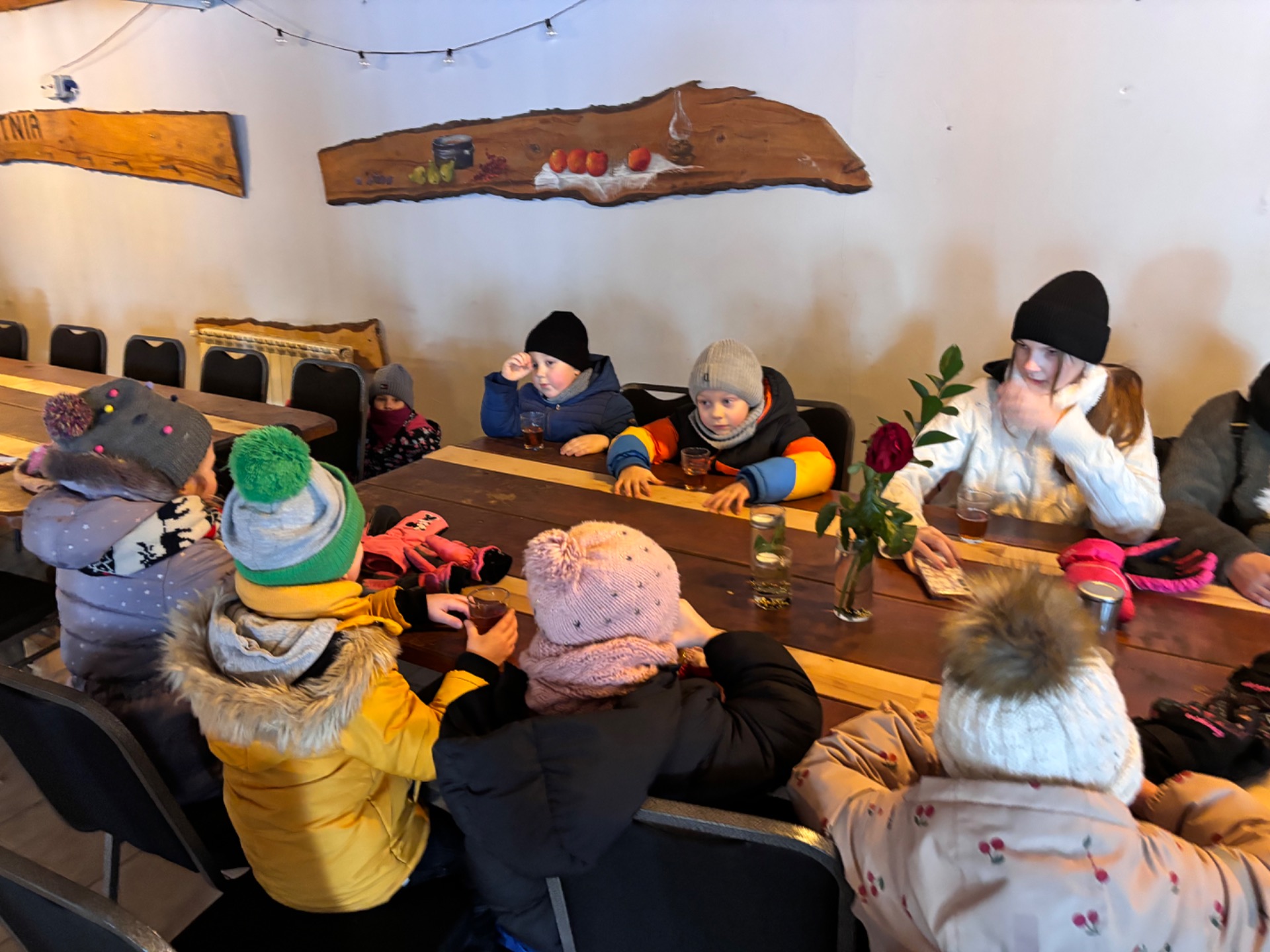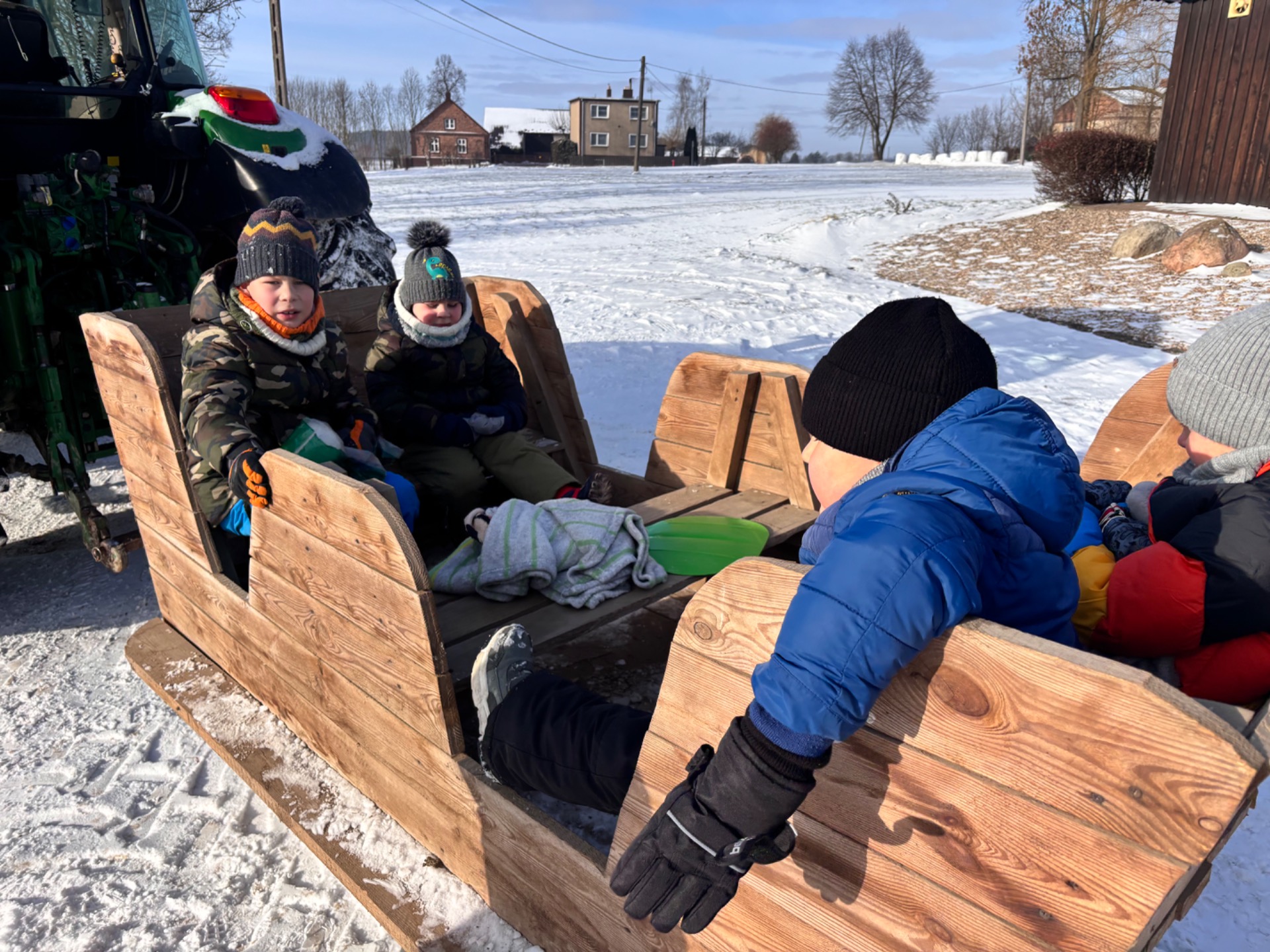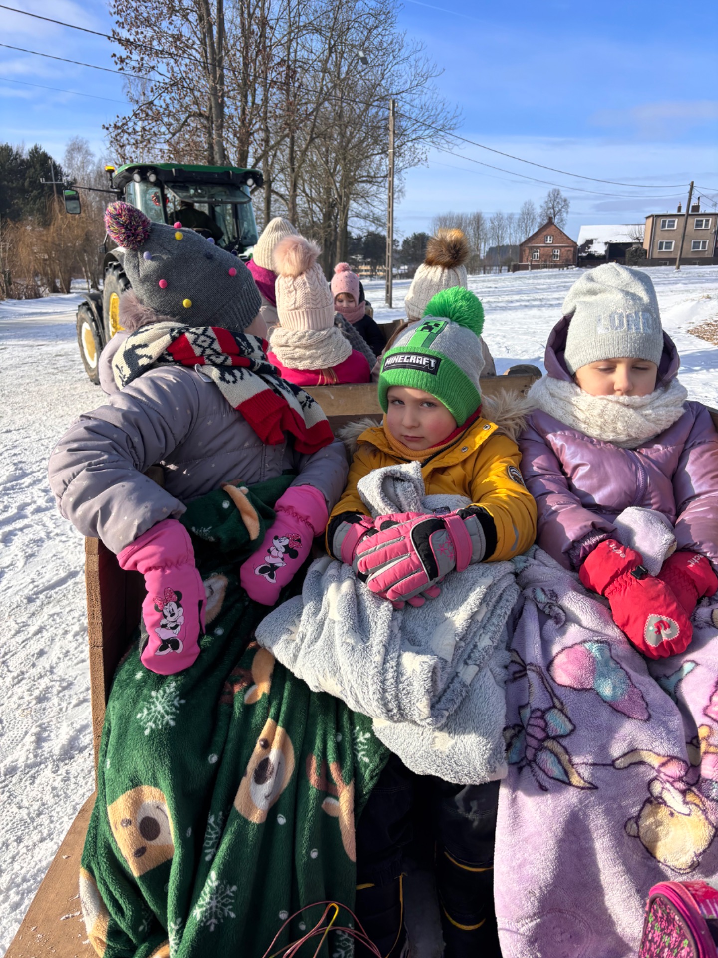 Podczas kuligu dzieci miały okazję przejechać się saniami ciągniętymi przez traktor, podziwiając zimowy krajobraz okolic Chróścina. Radosne śmiechy i zimowa aura sprawiły, że wyjazd na długo pozostanie w pamięci uczestników.