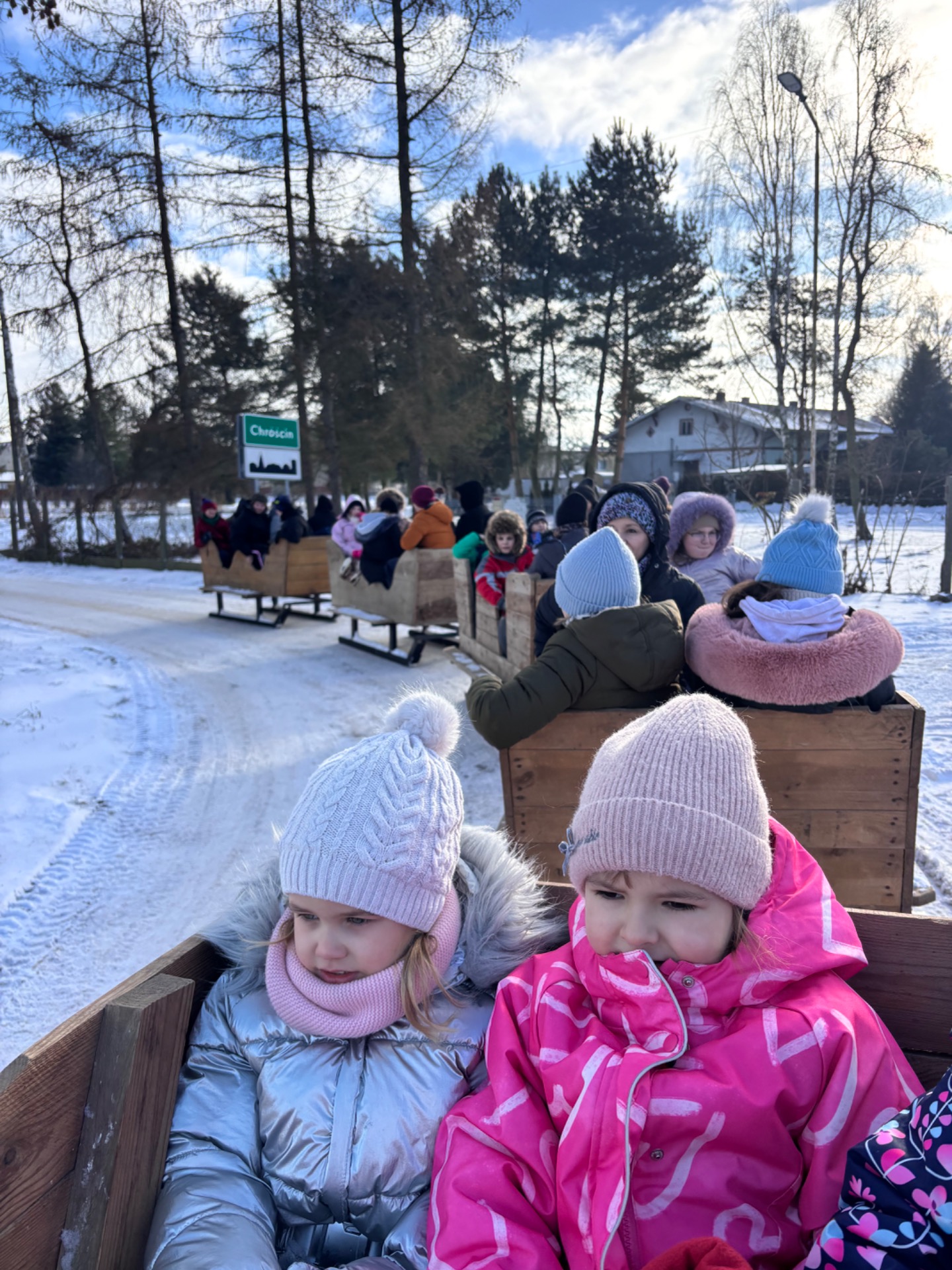 Dzieci oraz uczniowie Zespołu Szkolno-Przedszkolnego w Chróścinie przeżyli wyjątkową zimową przygodę, biorąc udział w kuligu. To radosne wydarzenie odbyło się dzięki ogromnej życzliwości pani Arlety z agroturystyki „Bocianie Gniazdo”, której serdecznie dziękujemy za zaproszenie i organizację.