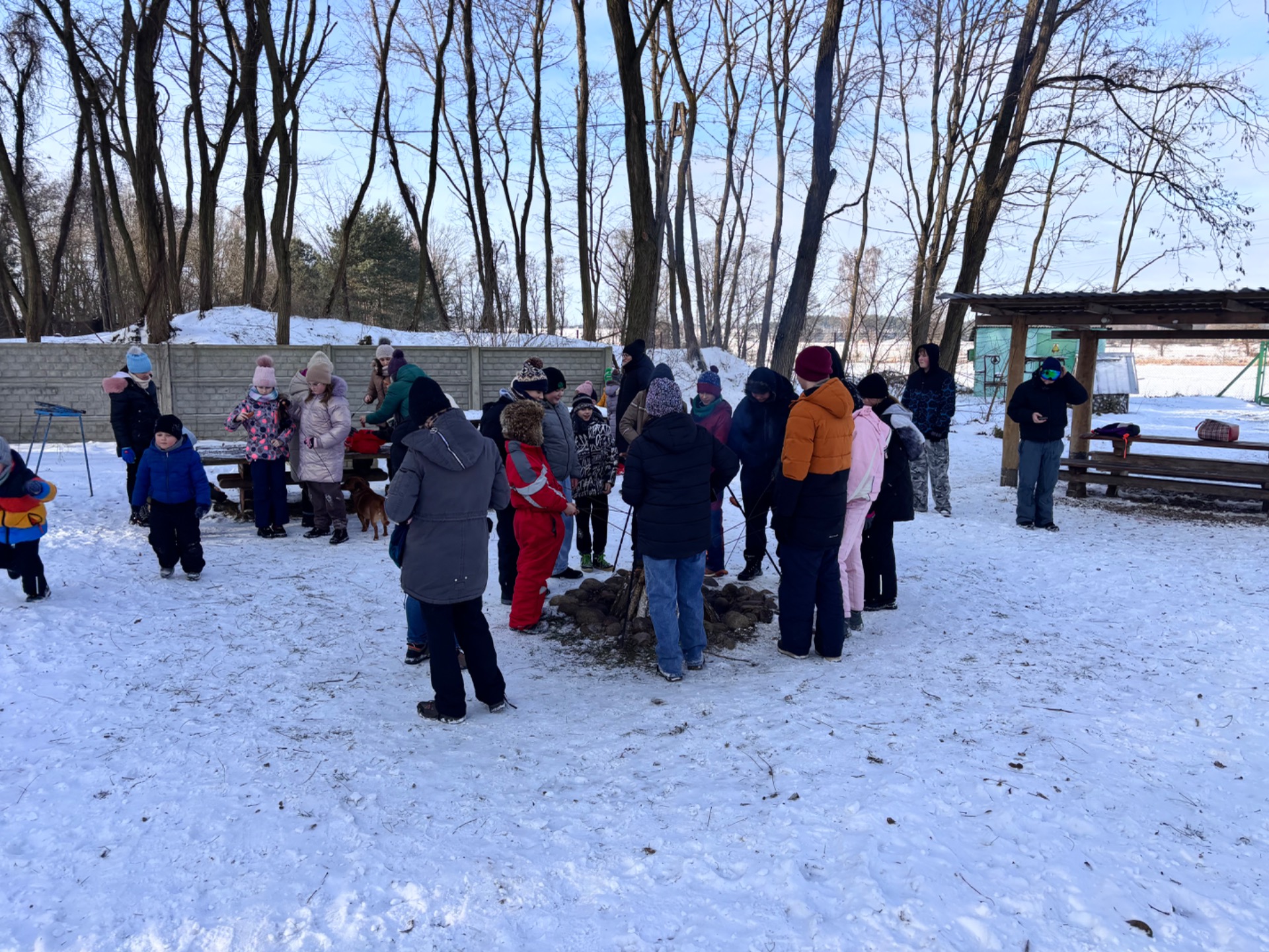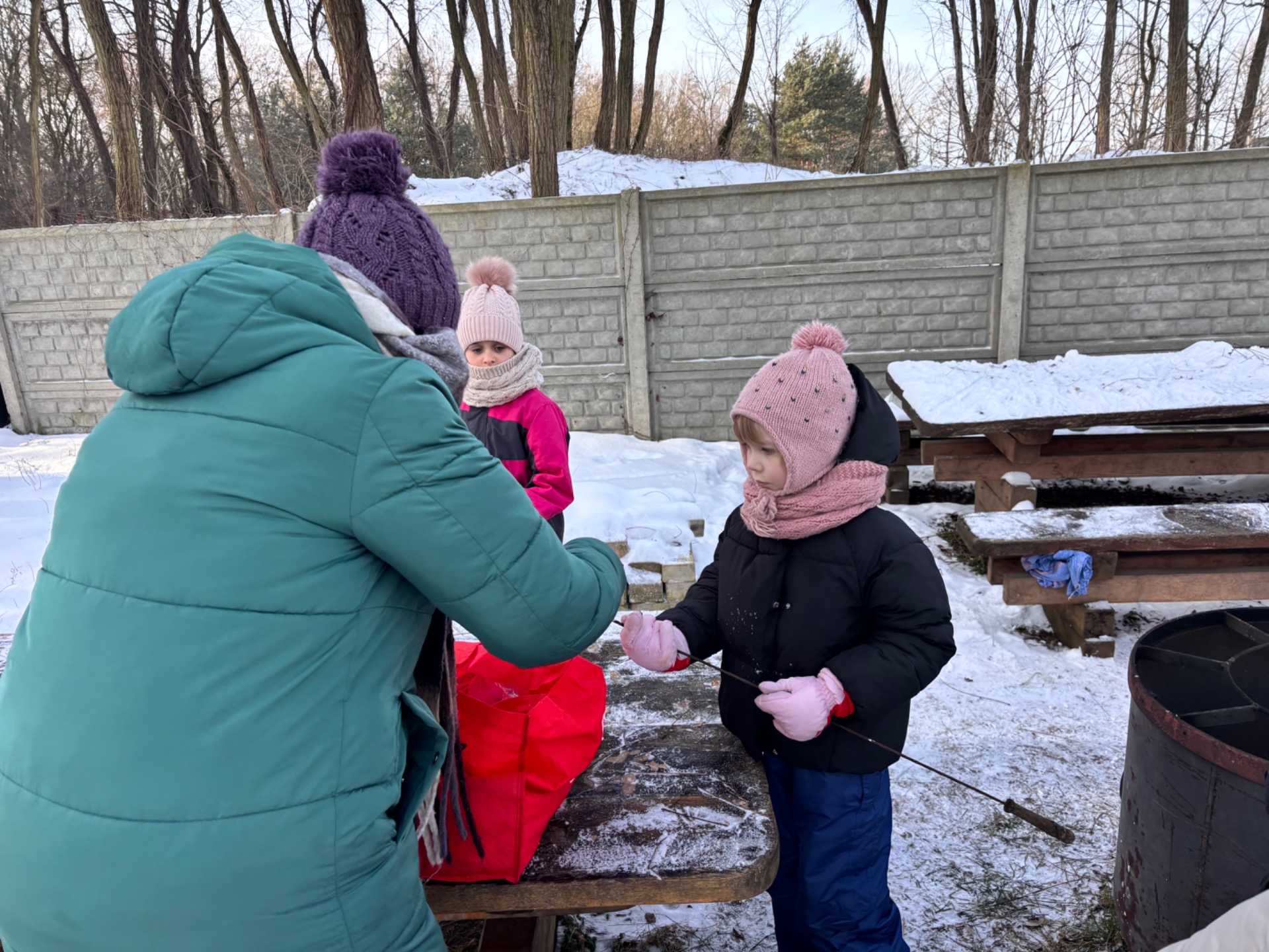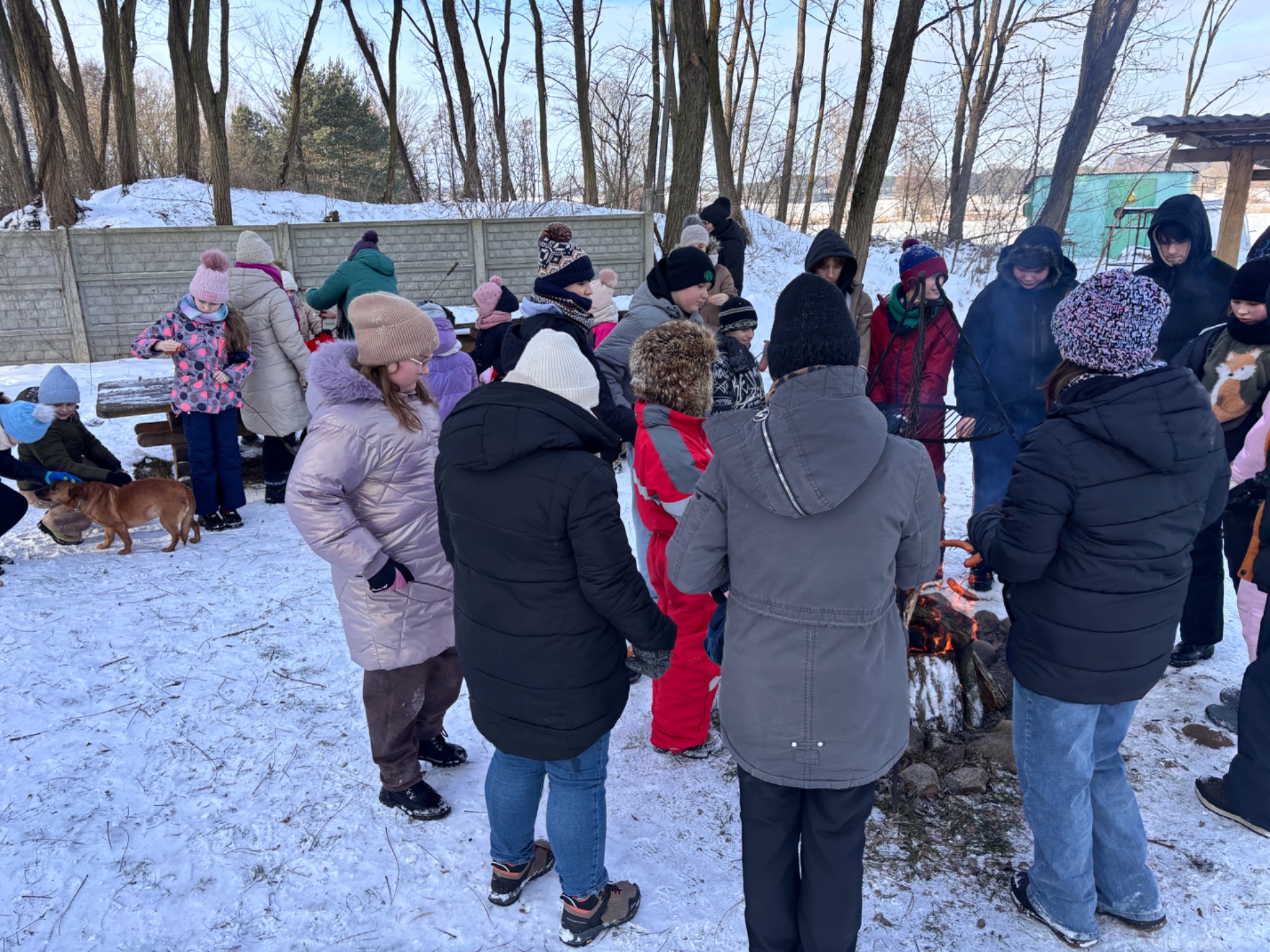 Po przejażdżce na wszystkich czekało ciepłe ognisko, które pozwoliło dzieciom ogrzać się i wspólnie spędzić czas w miłej atmosferze. Była to doskonała okazja do integracji przedszkolaków i uczniów oraz do wspólnej zabawy na świeżym powietrzu. Po ciepłej herbatce uczestnicy mieli okazję karmić zwierzęta znajdujące się w agroturystyce, była to dla dzieci nie tylko świetna zabawa, ale także cenna lekcja troski o zwierzęta.