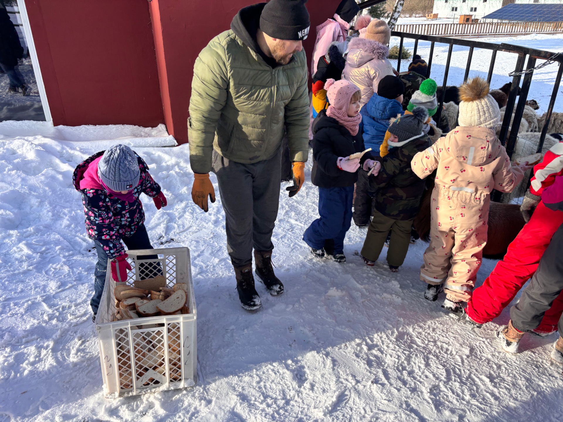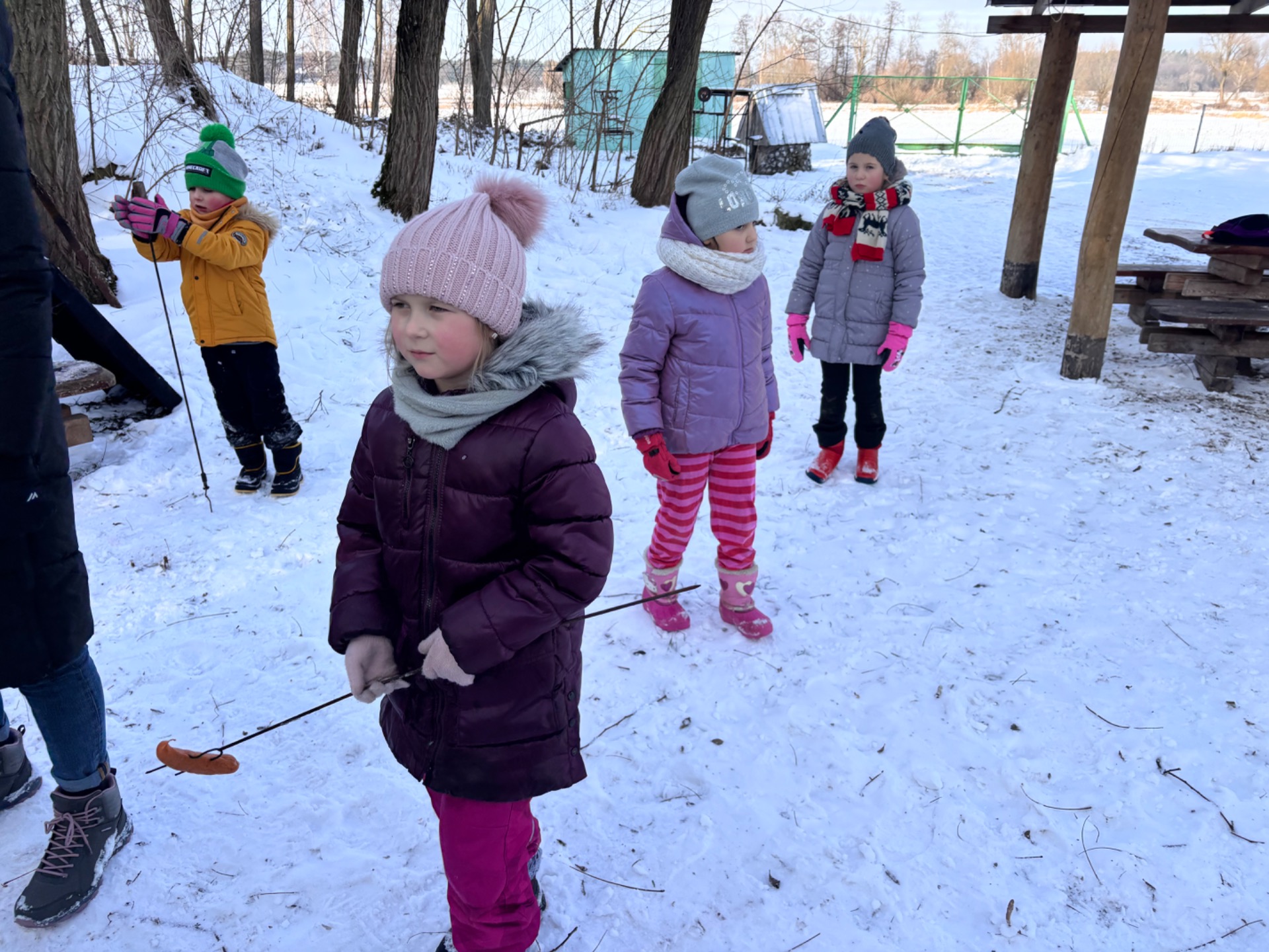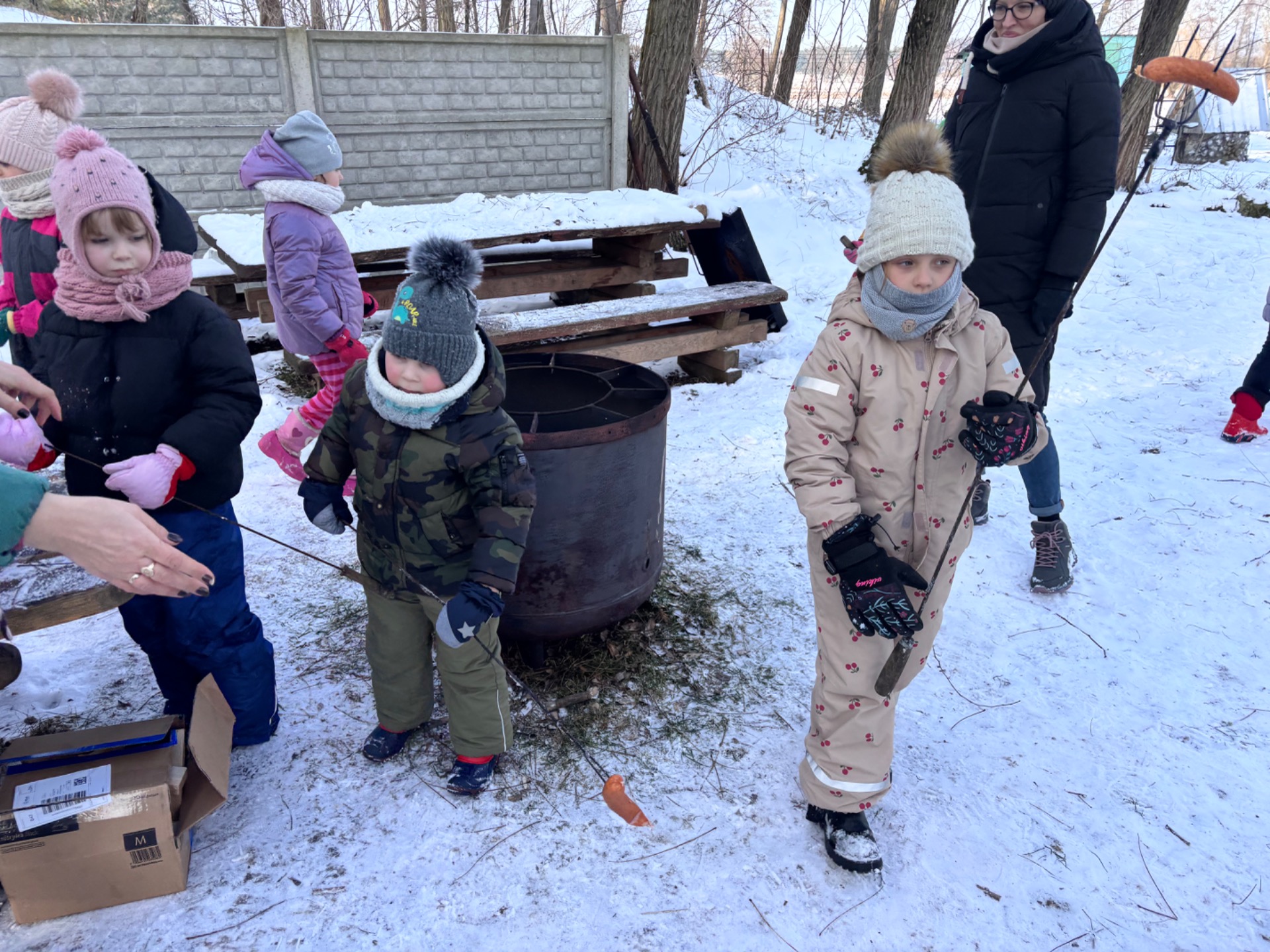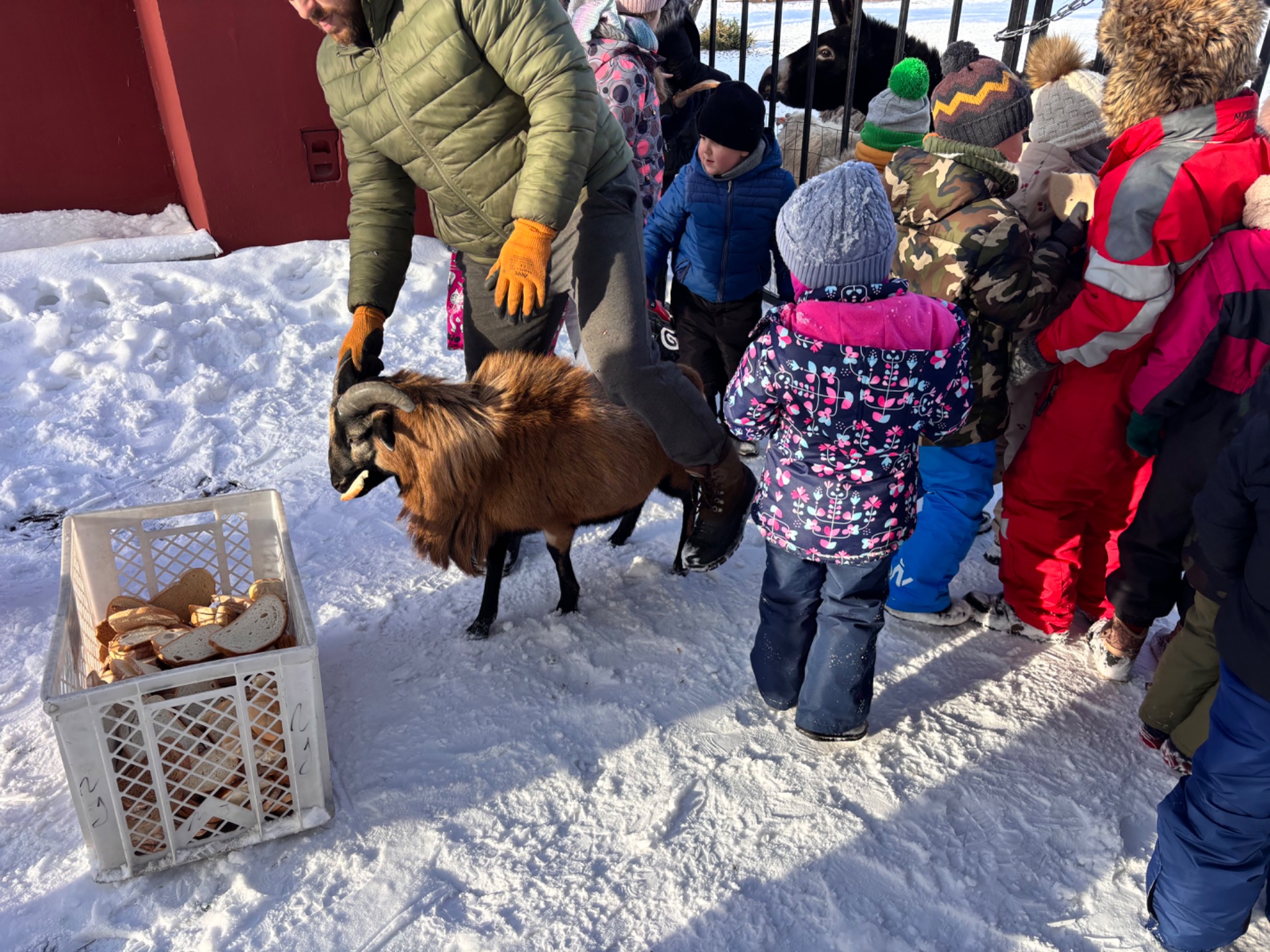 Po przejażdżce na wszystkich czekało ciepłe ognisko, które pozwoliło dzieciom ogrzać się i wspólnie spędzić czas w miłej atmosferze. Była to doskonała okazja do integracji przedszkolaków i uczniów oraz do wspólnej zabawy na świeżym powietrzu. Po ciepłej herbatce uczestnicy mieli okazję karmić zwierzęta znajdujące się w agroturystyce, była to dla dzieci nie tylko świetna zabawa, ale także cenna lekcja troski o zwierzęta.
